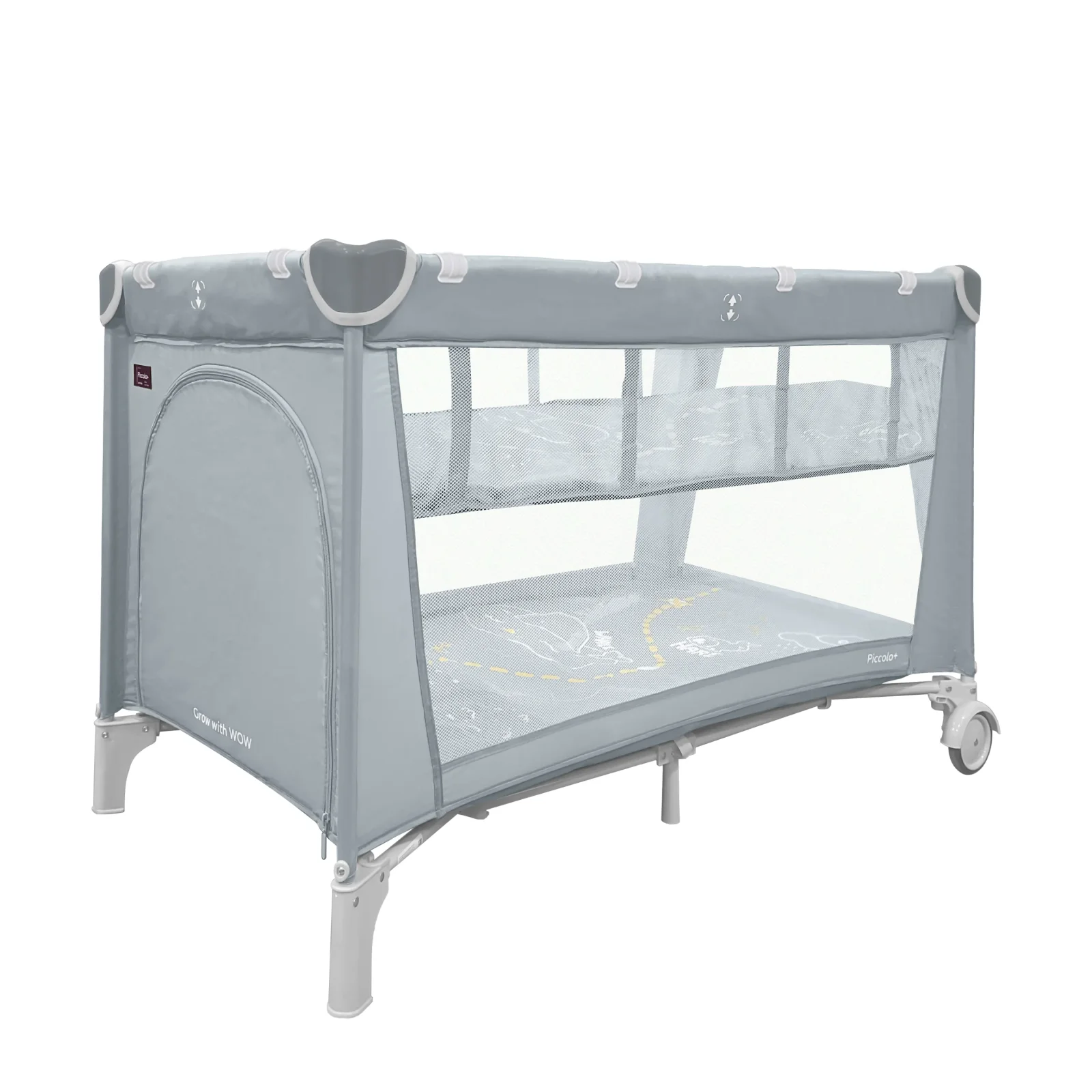 -розмір 125 * 65 * 79 см -з двома рівнями дна -барвистий розвиваючий малюнок на матраці -двокольорові пластикові куточки -2 колеса -віконце на змійці -жорстке дно -сумка-переноска в комплекті Розміри ящика - 21* 21 * 78см