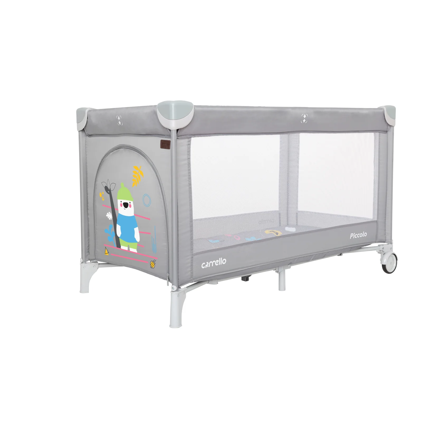 -розмір 125 * 65 * 79 см -барвистий розвиваючий малюнок на матраці і на боковому віконці -двокольорові пластикові куточки -2 колеса -віконце на змійці -жорстке дно -сумка-переноска в комплекті Розміри ящика - 21.7 * 21.2 * 79.2см
