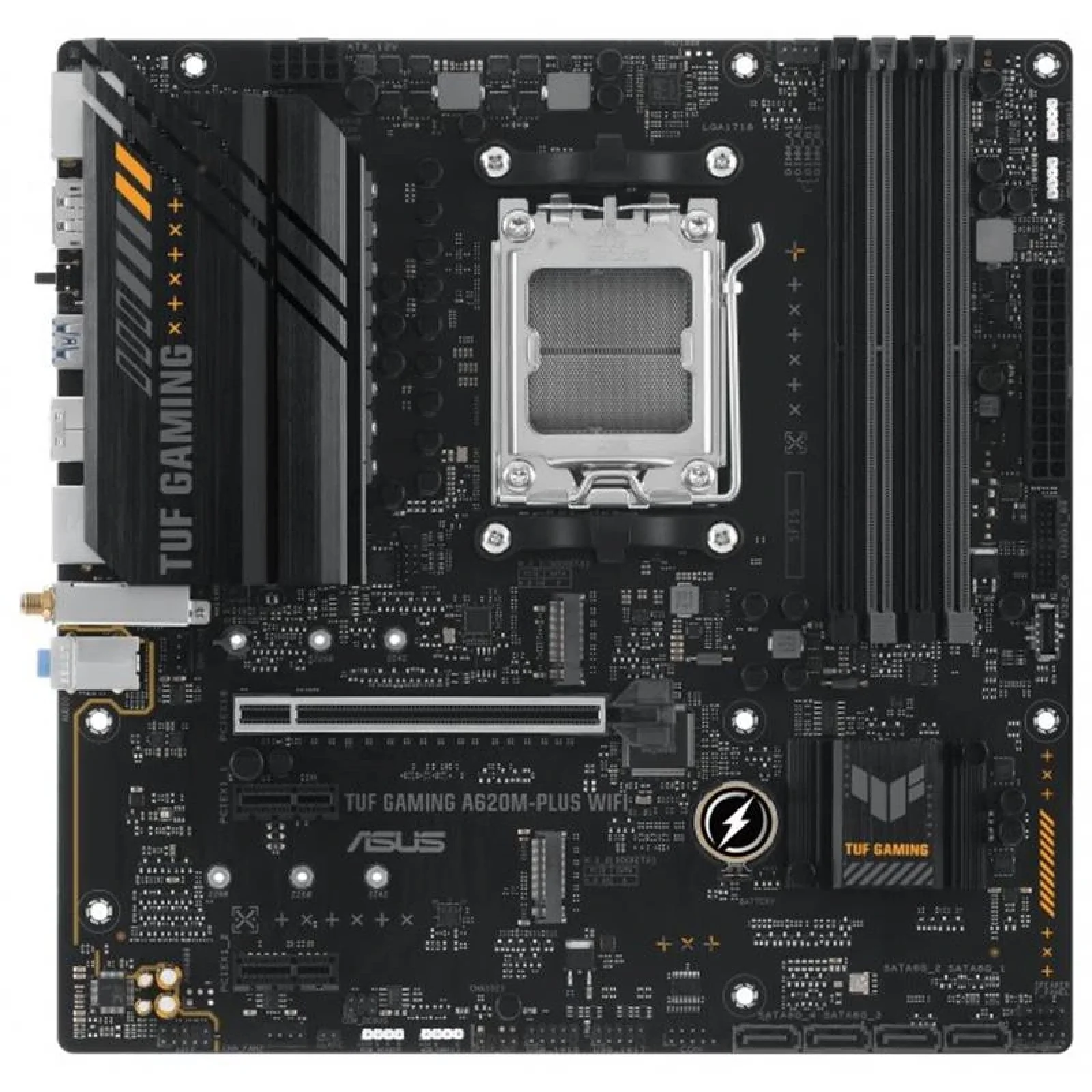 ASUS TUF GAMING A620M-PLUS WIFI увібрала в себе всі основні елементи процесорів AMD Ryzen 7000-ї серії та поєднала їх з ігровими функціями і перевіреною довговічністю. Завдяки компонентам військового класу, модернізованій системі живлення та комплексній системі охолодження ця материнська плата перевершує всі очікування, забезпечуючи надійну та стабільну продуктивність для марафонських ігор.