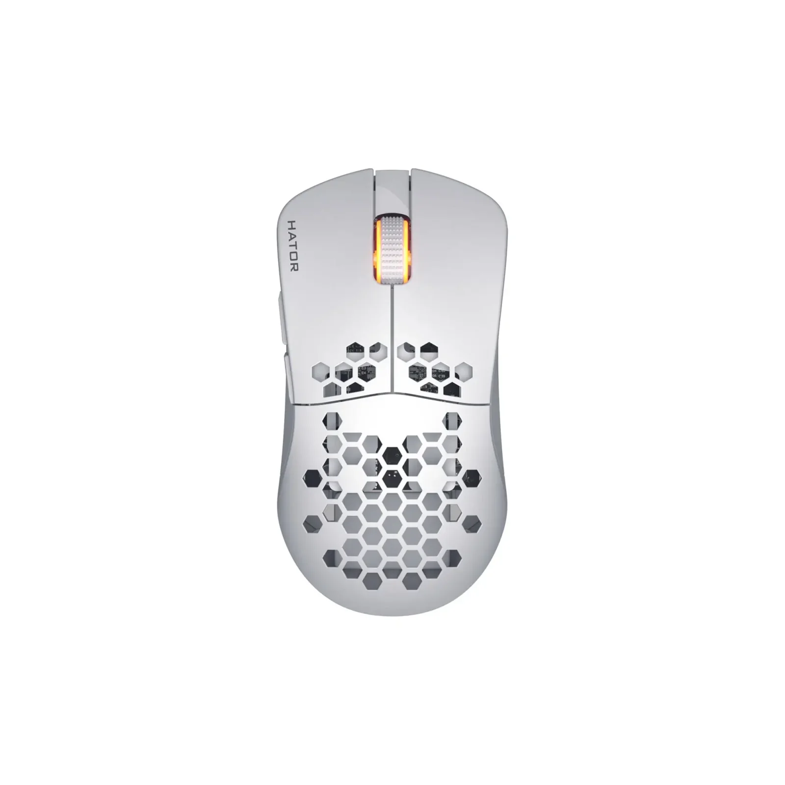 Симетричний корпус із перфорацією виконаний у білому кольорі, що надає миші свіжого та сучасного вигляду. Надзвичайно мала вага у 54 г і компактні розміри забезпечують комфорт навіть під час тривалих ігрових сесій, зменшуючи втому руки та дозволяючи повністю зосередитися на грі.