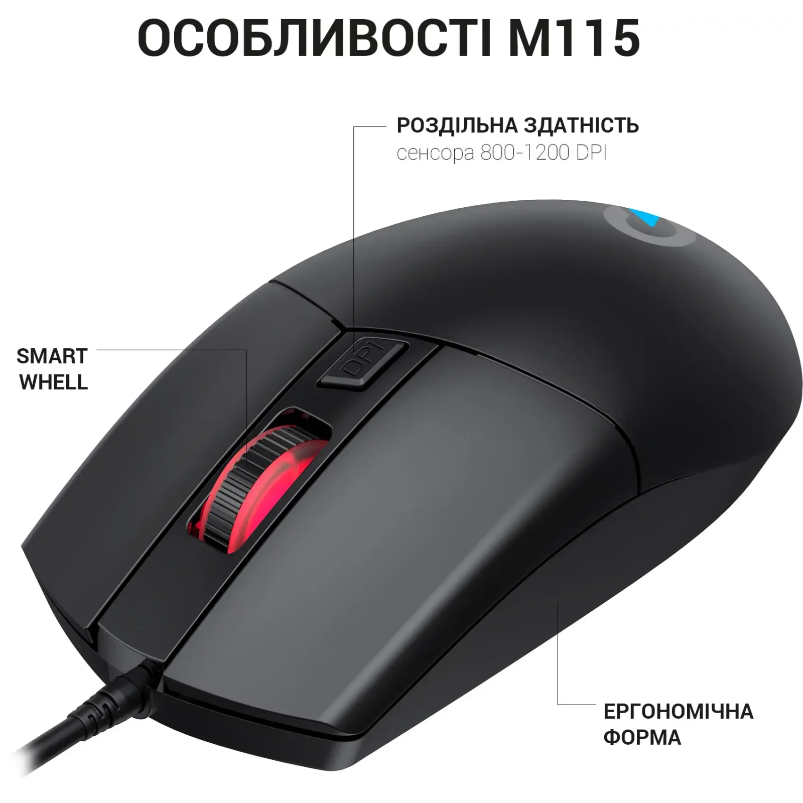 Мишка OfficePro M115 USB Black - це пристрій, який призначений для роботи з комп'ютером і має кілька особливостей.