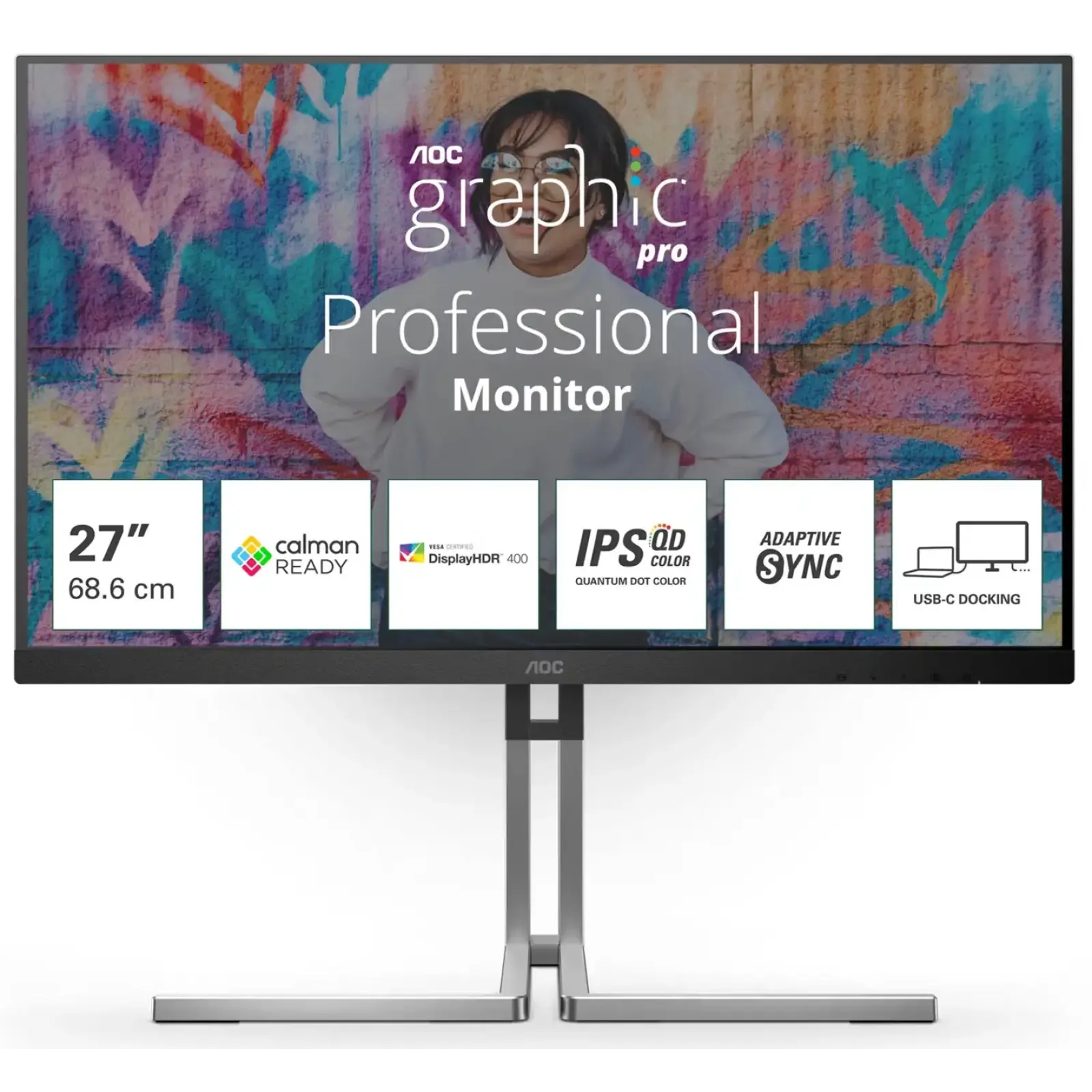 AOC Q27U3CV — це сучасний 27-дюймовий монітор, який ідеально поєднує високу роздільну здатність 2560x1440 і точну IPS-матрицю, створюючи чітке, деталізоване зображення з природною передачею кольорів. Формат 16:9 забезпечує універсальність у будь-яких задачах — від роботи з документами до обробки фото та відео, а антиблікове покриття дозволяє комфортно працювати навіть при яскравому освітленні без зайвого навантаження на очі.