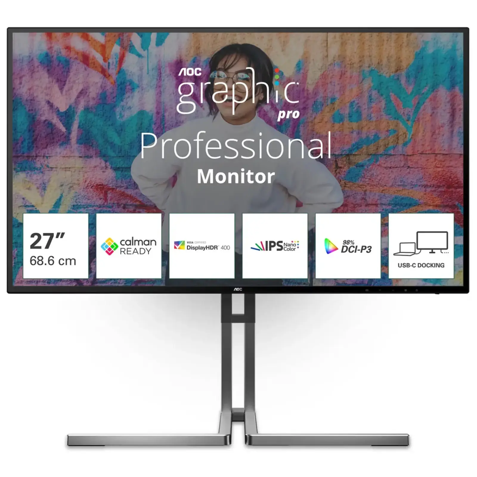 AOC U27U3CV — це 27-дюймовий монітор із роздільною здатністю 3840x2160, який відкриває новий рівень деталізації та чіткості зображення, дозволяючи побачити більше в кожному кадрі. IPS-матриця забезпечує природну передачу кольорів і широкі кути огляду 178°/178°, завдяки чому зображення залишається стабільним і насиченим незалежно від положення перед екраном, а антиблікове покриття додає комфорту під час тривалої роботи.
