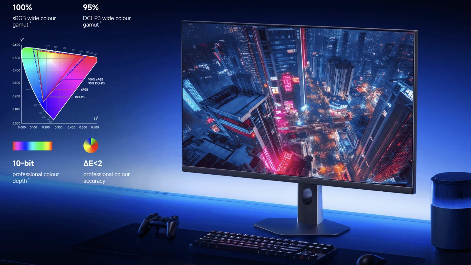 Монітор охоплює 95% DCI-P3 і 100% sRGB, підтримує 10-бітну глибину кольору через 8-bit + FRC і має точність передачі кольору ΔE<2. Завдяки цьому зображення виглядає насиченим, переходи між відтінками - плавнішими, а кольори - більш рівними та природними. Це доречно не лише для ігор, а й для повсякденної роботи з фото, відео й графікою, де важлива акуратна кольоропередача.