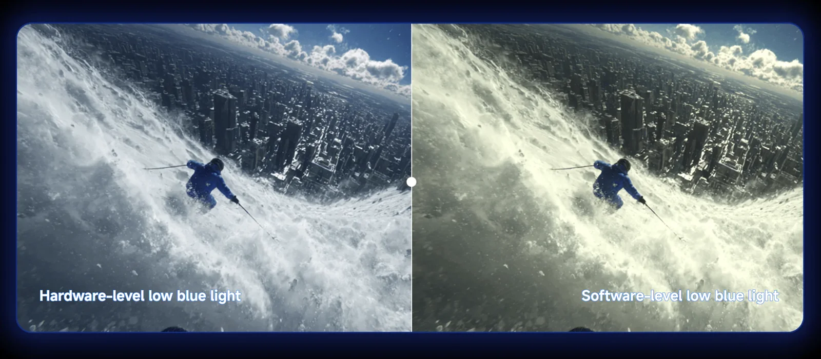 Модель має сертифікацію TÜV Low Blue Light і підтримує апаратне зниження синього світла. Xiaomi заявляє зменшення шкідливого короткохвильового синього світла до 50% у порівнянні зі стандартними рішеннями підсвічування, при цьому кольори залишаються точними без характерного жовтого відтінку. Для тривалих сесій за монітором це важлива перевага, яка допомагає знизити навантаження на очі.