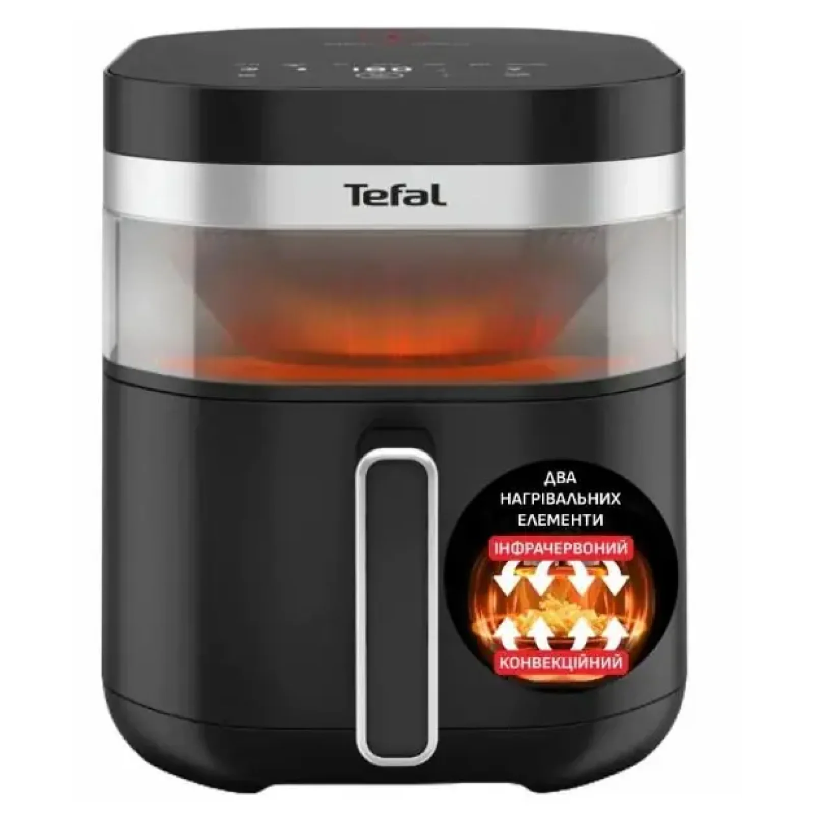 Dual Heating System - Поєднання двох нагрівальних елементів, Технологія Infrared - перша мультипіч від Tefal з інфрачервоною технологією. Пряме проникнення тепла за допомогою інфрачервоного випромінювання надає їжі соковитості та створює хрустку скоринку, Додатковий нижній нагрівний елемент для швидкого рівномірного приготування смачних, соковитих страв, Економія до 70% електроенергії, Оглядове віконце для контролю під час готовки, Підсвітка чаші з керованим вимкненням, Зручний ручний режим дозволяє готувати безліч різноманітних рецептів, Готування корисних смачних страв з використанням усього однієї ложки олії, або взагалі без неї, Опція "хрустка скоринка", яку можна додати до автоматичних програм