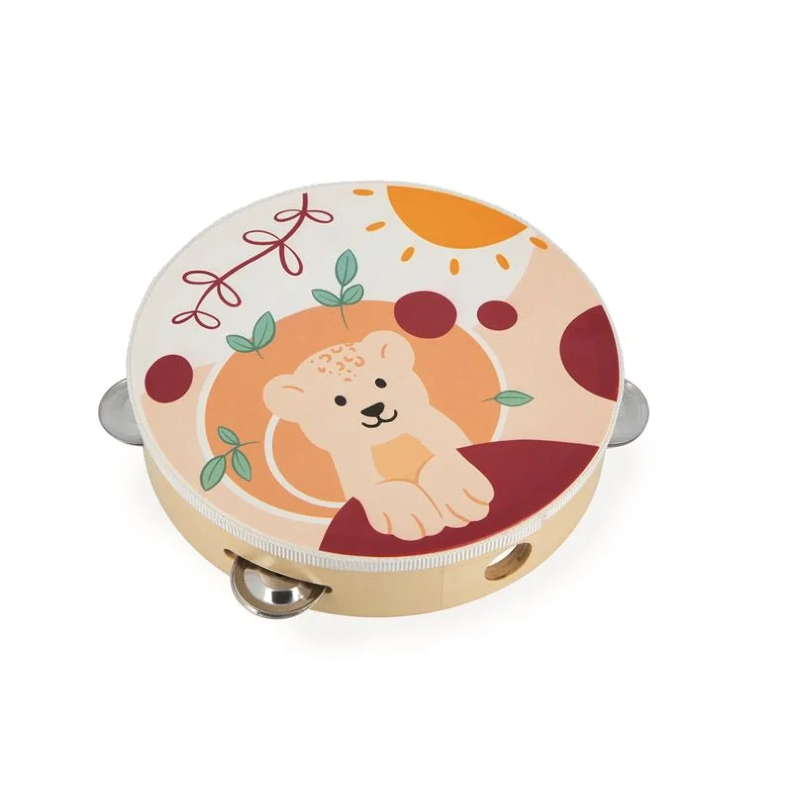 Дозвольте левеняті Лео показати вам ритми савани з цим гарним барвистим бубном. Ця музична іграшка допоможе вашій дитині познайомитися зі звуками і, ширше, з музикою. Якщо використовувати його обома руками, він поєднує звук тарілок і барабана. Ідеально підходить для розвитку координації та стимулювання музичного пробудження маленьких артистів. Дерев'яна музична іграшка для дітей від 18 місяців. Пройдіть слідами тигриці Тесс і левеняти Лео в цьому асортименті музичних іграшок. Вони перенесуть вас у поетичну подорож Африкою та Азією в ритмі чудових теплих звуків і кольорів.