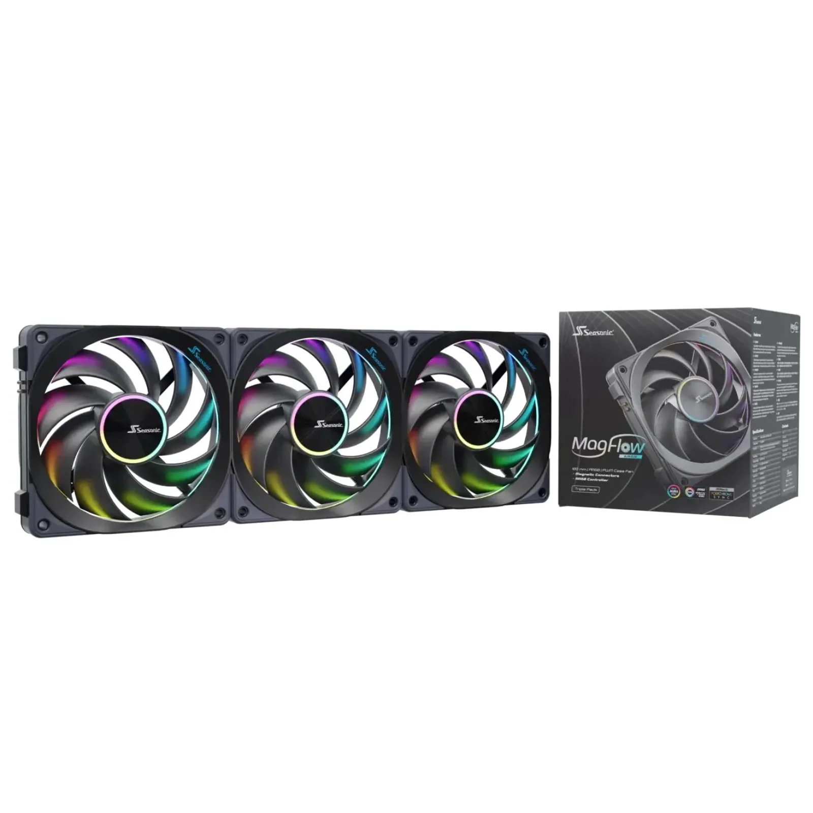 Три 120 мм вентилятори з'єднані daisy-chain системою для мінімальної кількості кабелів. Магніти N52 з гумовими вставками дозволяють безгвинтове кріплення до сталевих панелей корпусу товщиною 0.8-1.3 мм.
