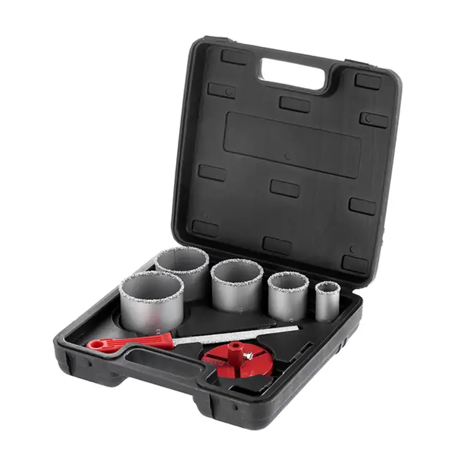 Коронки з карбід-вольфрамовою крихтою призначені для точного свердління наскрізних отворів у різних матеріалах, таких як керамічна та кахельна плитка, пористий бетон, цегла, шифер тощо. Ідеально підходять для створення отворів для розеток, вимикачів, труб та комунікацій, з можливістю вибору оптимального розміру. У комплекті коронки діаметром 33, 53, 67, 73, 83 мм.