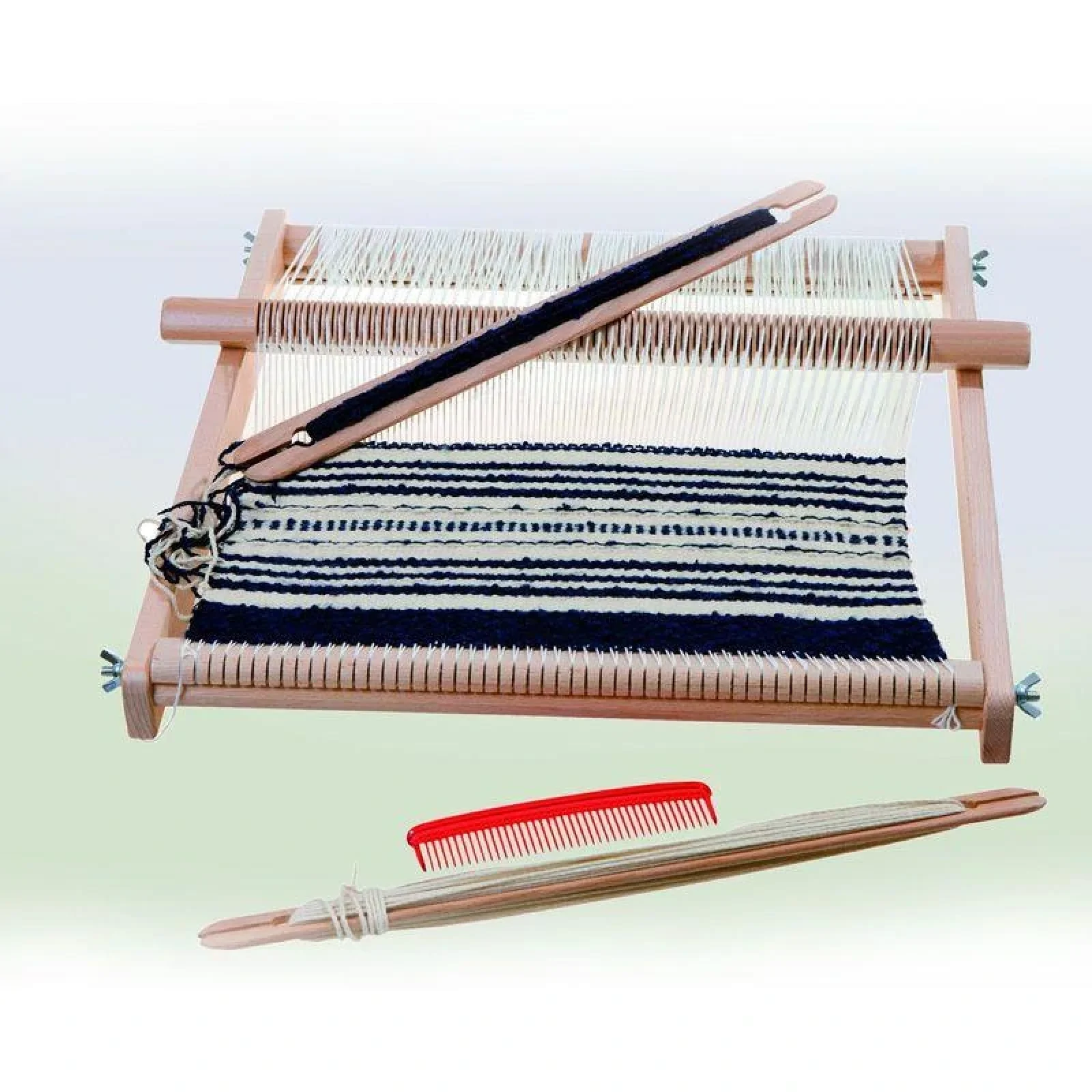 Ткацького верстат Із натурального дерева - чудовий подарунок дітям від 3-х років, Яким цікаве рукоділля. ВІН підійде як для навчання ткацькій делу, так и для досвідченіх знавців. Ткацького верстат німецького виробника іграшок nic постачається у фірмовій упаковці у розібраному виде. У поліетіленовому ЗІП-пакеті складені кріплення та Гребінець. Нитки до комплекту не входять. Довжина верстату - 45 см, ширина разом Із ремізкою - 38,5 см. Ширина ткацької площади - 27,5 см. Усі деталі віроблені Із натурального дерева. Воно дуже якісно оброблено, тому пряжа НЕ пошкодили.