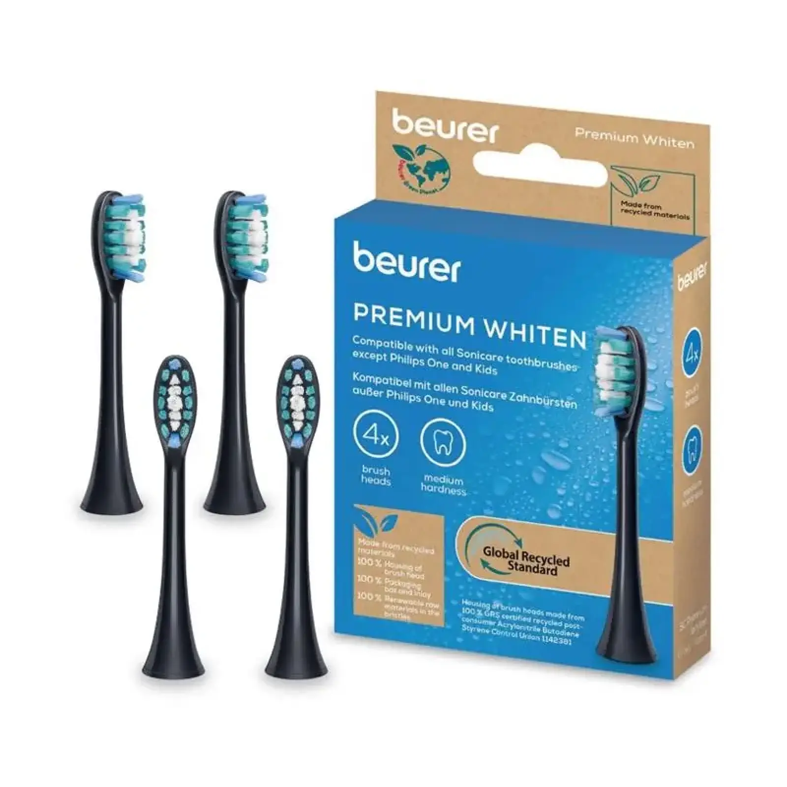 Змінні насадки Beurer серії Premium Whiten (модель SC_30/50_PW_4) — це спеціалізоване рішення для тих, хто прагне повернути зубам їхню природну білизну. Виконані в елегантному чорному кольорі, ці насадки ідеально пасують до преміальних моделей звукових щіток Beurer. Завдяки особливій технології розташування щетинок, вони ефективно працюють над видаленням пігментації від кави, чаю та вина, забезпечуючи видимий результат полірування емалі без агресивного впливу.