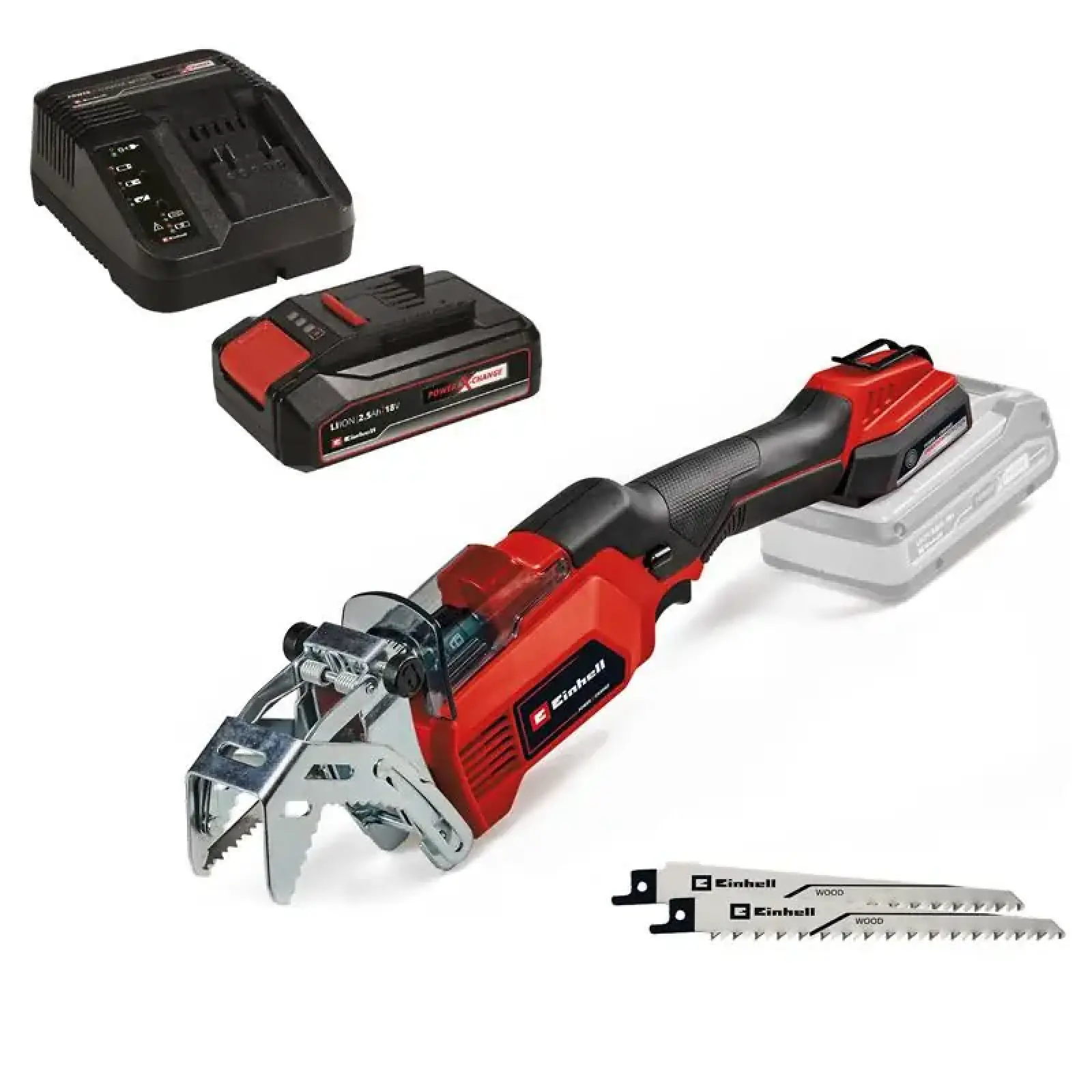 Акумуляторна обрізна пилка Einhell GE-GS 18/150 Li Kit є компактною, легкою та зручною, коли справа доходить до розпилювання невеликих гілок на деревах, кущах тощо