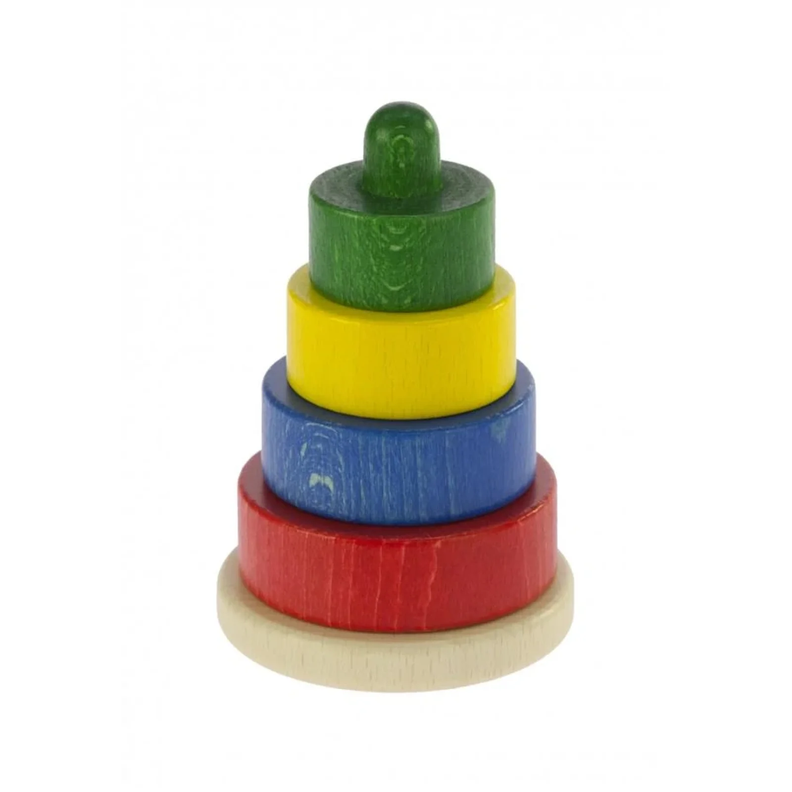 Дерев’яна пірамідка німецького виробника іграшок nic пофарбована у традиційні кольори. Іграшка призначена для дітей від 1 року. Набір постачається у фірмовій картонній упаковці, складається з 5 деталей, всі вони вироблені із натурального дерева. Вони якісно оброблені, їх приємно тримати в руках. Фарби нетоксичні, тож весь комплект безпечний для здоров’я дітей. Висота пірамідки – 11 см.