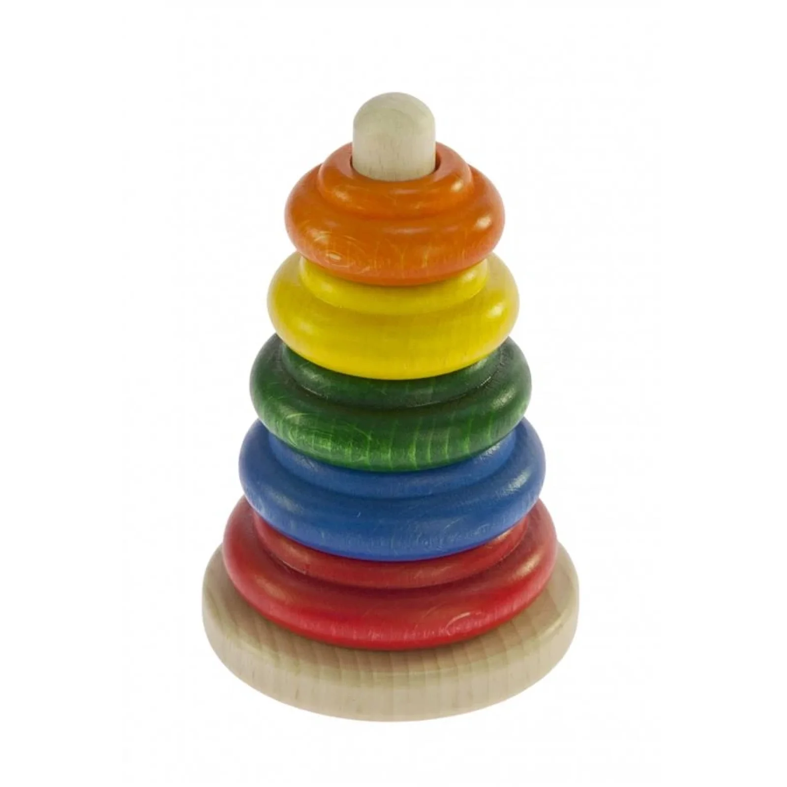 Класична пірамідка – це найпоширеніша іграшка для дітей. Комплект іграшки оформлений у фірмову картонну упаковку. Пірамідка складається із 6 деталей, її висота – 12 см. Усі деталі вироблені із натурального дерева, вони якісно оброблені. Кольорові фарби нетоксичні, весь комплект – безпечний для здоров’я дитини. Така пірамідка рекомендована дітям від 1 року.
