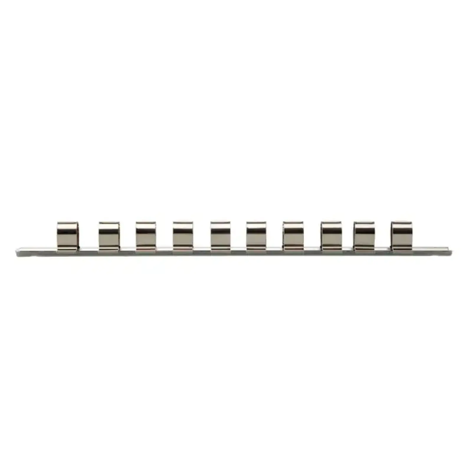 Планка-тримач призначена для зручного зберігання та транспортування торцевих головок з посадковим квадратом 1/2". З таким аксесуаром насадки завжди під рукою, не губляться і ви можете швидко підібрати потрібний розмір головки.