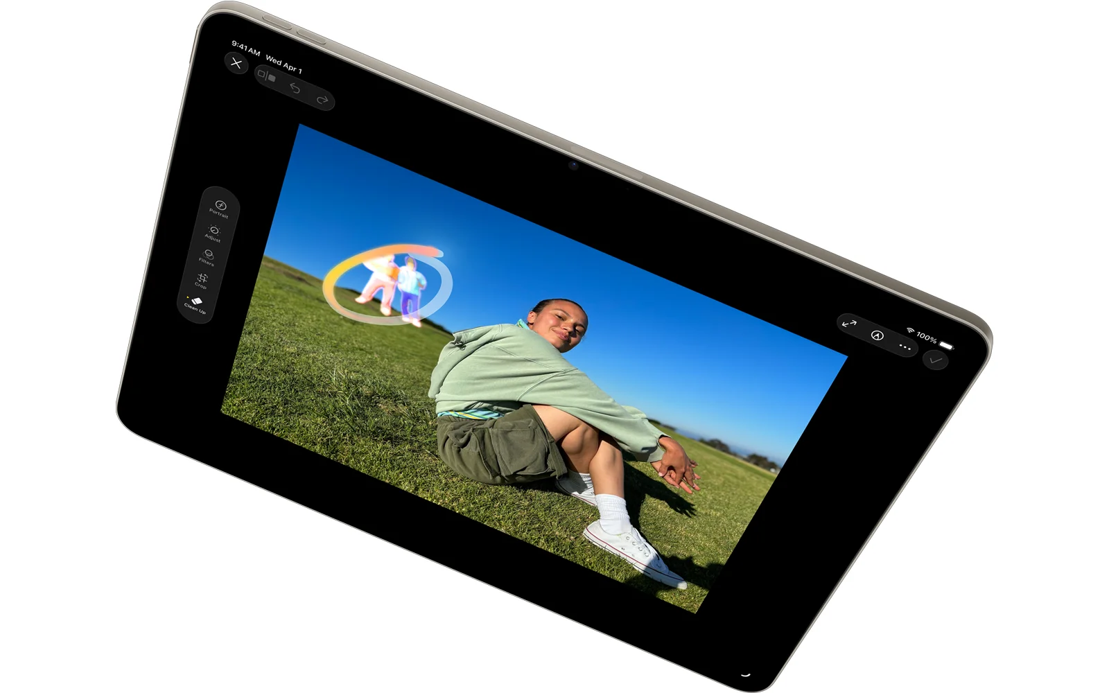 Завдяки 16-ядерній системі Neural Engine у чипі M4 iPad Air став ще потужнішим пристроєм для роботи зі штучним інтелектом. Більший обсяг об’єднаної системної пам’яті й вища пропускна здатність пам’яті прискорюють виконання повсякденних завдань ШІ, таких як пошук тексту в Goodnotes. Neural Engine також забезпечує потужні функції ШІ в додатках для редагування фото й відео, надаючи вам більший контроль і допомагаючи без зусиль утілювати ваші творчі задуми.