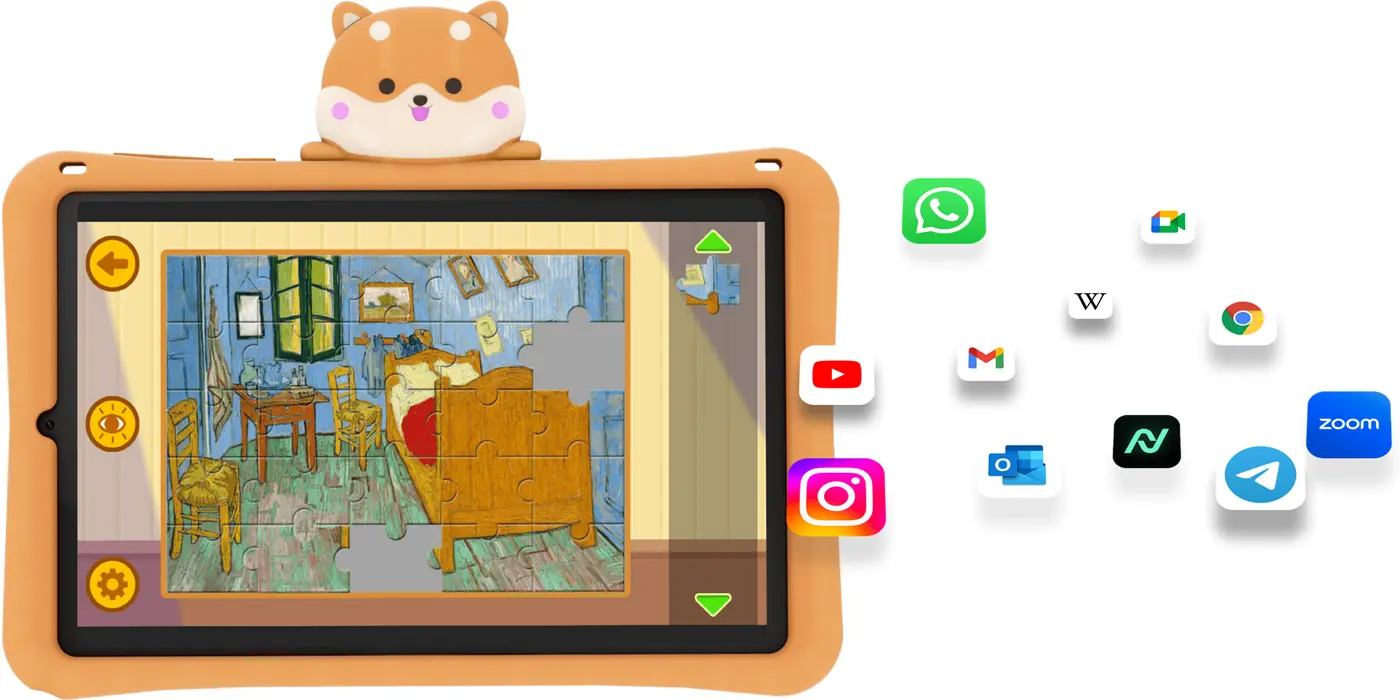 Планшет DOOGEE T20 mini KID створив Kids World з урахуванням потреб батьків і дітей. «Дитячий світ» - це зручне для дітей місце з багатим набором функцій, де діти можуть грати та навчатися в безпечному та здоровому середовищі. У Kids World виділено особливу зону батьківського контролю. За допомогою кількох простих налаштувань програми ви можете захистити своїх дітей від небезпек в Інтернеті. Навіть якщо вас немає поруч, ви можете бути впевнені, що вони зможуть грати та вчитися з планшетом.