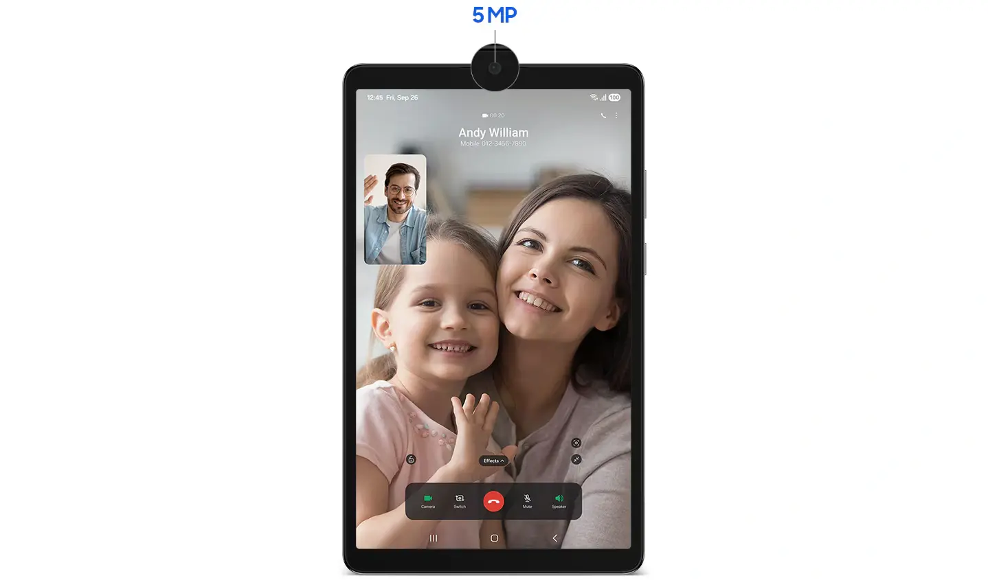 Будьте ближче. Galaxy Tab A11 оснащений фронтальною камерою на 5 МП для чіткіших і якісніших відеодзвінків. Незалежно від того, чи спілкуєтеся ви з родиною, чи працюєте в команді, покращена чіткість дозволяє бачити кожну посмішку і вираз обличчя в реалістичних деталях.