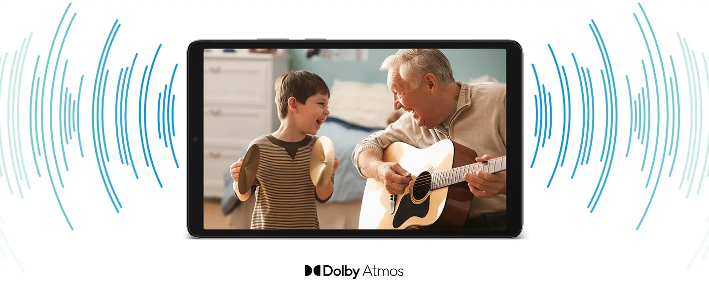 Galaxy Tab A11 оснащений подвійними динаміками, розробленими компанією Dolby, які забезпечують насичений багатовимірний звук. Від улюблених плейлистів до сучасних фільмів – захопливий 3D-звук занурює вас у дивовижно чіткий, чистий і глибокий світ звуків. Galaxy Tab A11 також оснащений аудіороз'ємом 3,5 мм, тому ви можете насолоджуватися контентом за допомогою дротових навушників із максимальним комфортом.