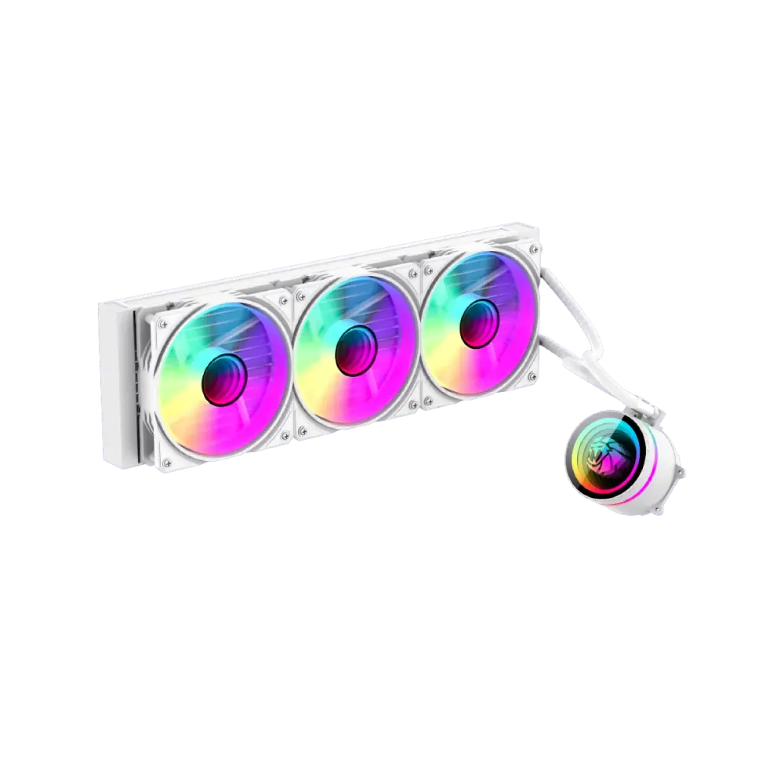 GameMax IceBurg 360 Infinity WH — це ефективна СВО формату 360 мм, створена для стабільної роботи навіть найпотужніших процесорів з TDP до 300 Вт. Оснащена трьома 120-мм вентиляторами з адресним ARGB-підсвічуванням та вдосконаленим водоблоком, ця система забезпечує відмінне відведення тепла й стильне підсвічування для вашої збірки.