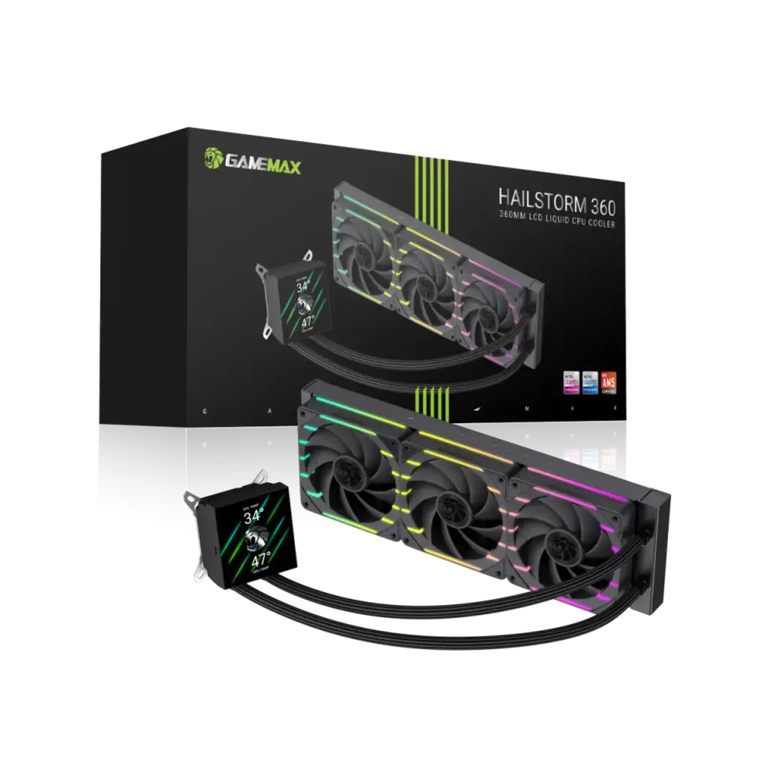 Алюмінієвий корпус кулера додає надійності та довговічності, а RGB-підсвітка робить збірку привабливою та сучасною. Підтримка підключення через 3 pin та 4 pin дозволяє легко інтегрувати кулер з материнською платою та керувати підсвіткою. GameMax Hailstorm 360 BK поєднує високу продуктивність, ефективне охолодження та стильний дизайн, роблячи його відмінним вибором для геймерів та ентузіастів, які прагнуть максимальної стабільності та естетики свого ПК.