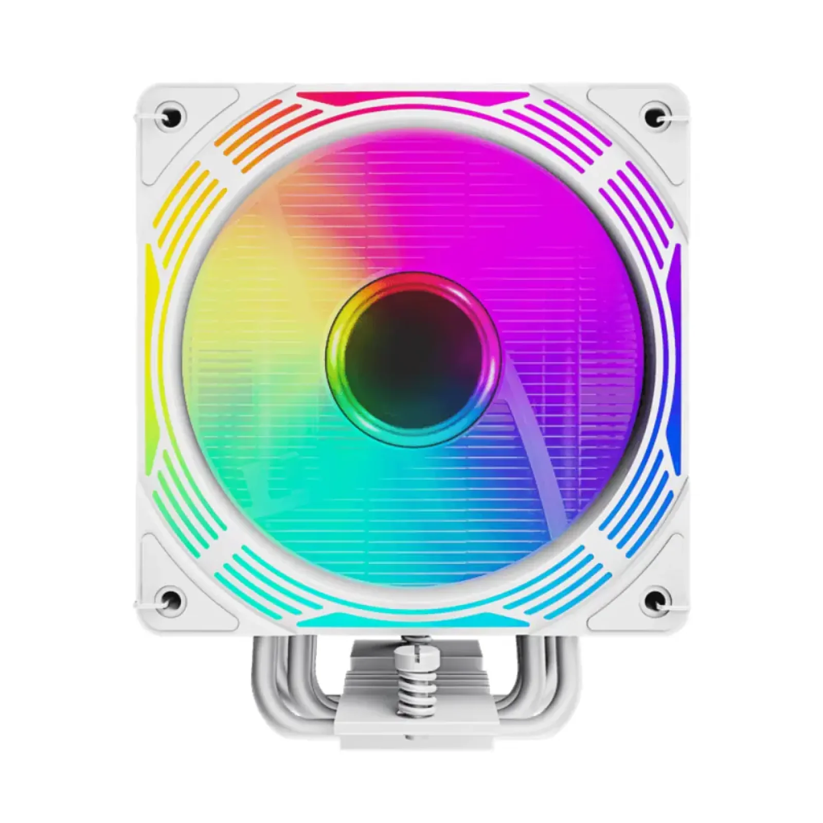 Кулер для процесора GAMEMAX Ice Force WH, пофарбований у білий колір, має чотири теплові трубки. Він підтримує процесори Intel Gen12, 13 та останню модель AMD, оснащений світловими ефектами ARGB. Максимальна теплова потужність процесора, з якою повинна справлятися система охолодження - 200W.