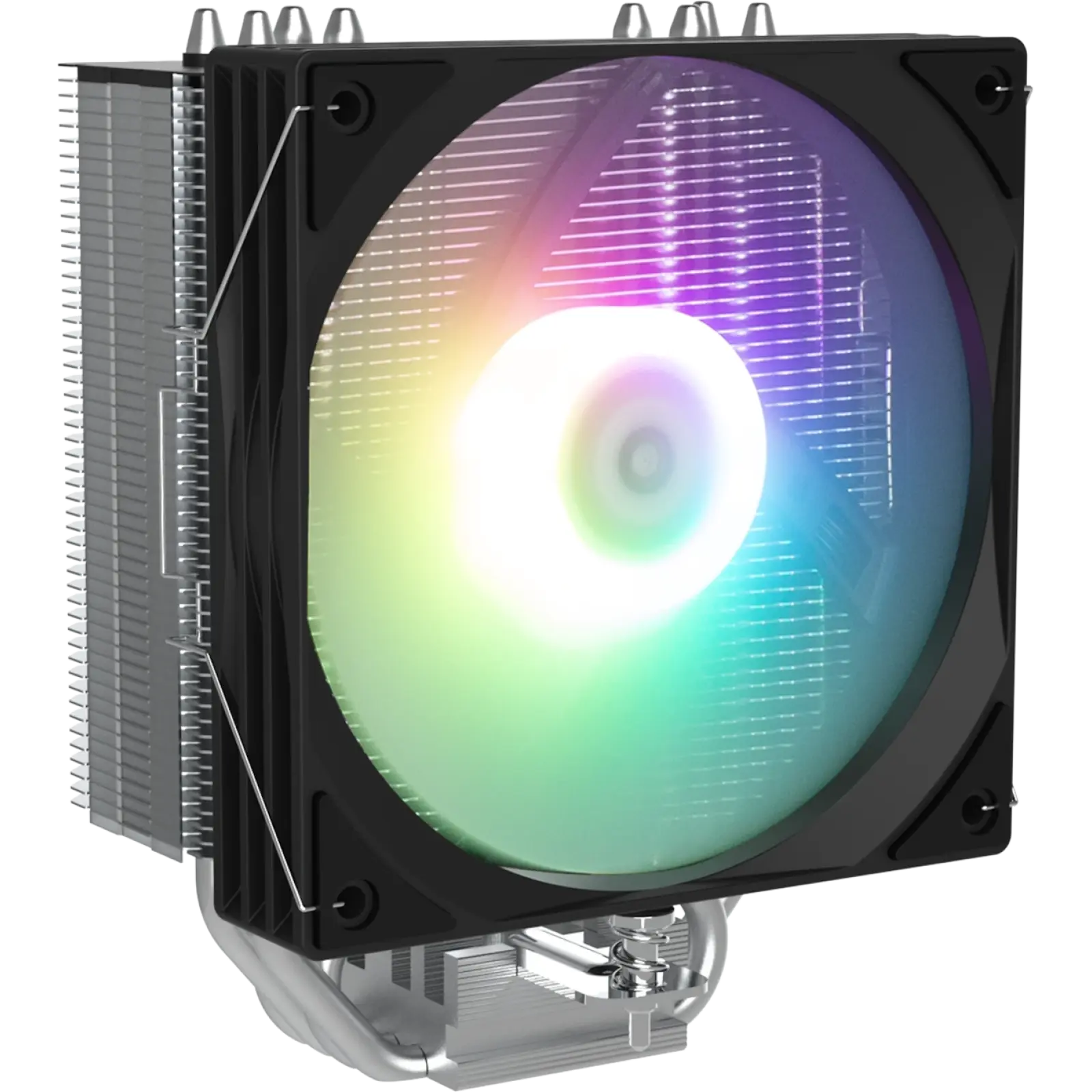 Алюмінієвий радіатор у поєднанні з чотирма тепловими трубками та вентилятором 120 мм забезпечує оптимальне відведення тепла при розсіюваній потужності до 190 Вт. Швидкість обертання вентилятора регулюється від 800 до 1500 об/хв, а повітряний потік 47,12 CFM і рівень шуму 30 дБ дозволяють поєднувати ефективність охолодження з комфортним рівнем тиші. Гідродинамічний підшипник гарантує довговічність та надійну роботу кулера до 40000 годин.