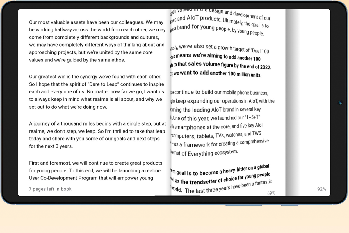Оснащений флеш-пам’яттю UFS 2.1, Realme Pad Mini значно прискорює швидкість читання та запису. Завдяки до 64 ГБ ПЗП і до 1 ТБ розширюваної пам’яті у вас буде більше місця для зберігання ваших відео, фото та інших файлів.