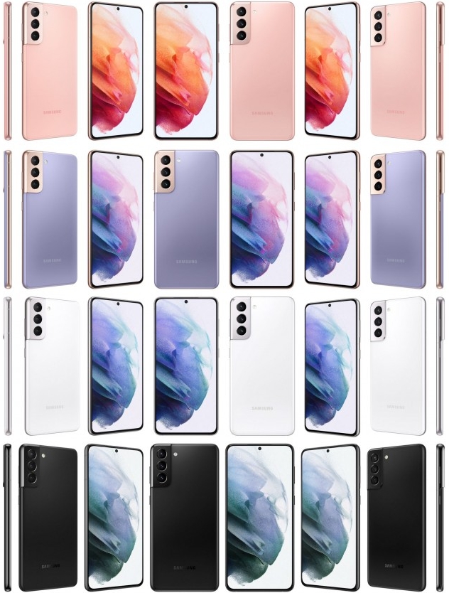 Сьогодні з'явився набір офіційних рендерів Galaxy S21 початкового рівня у всіх чотирьох кольорах.