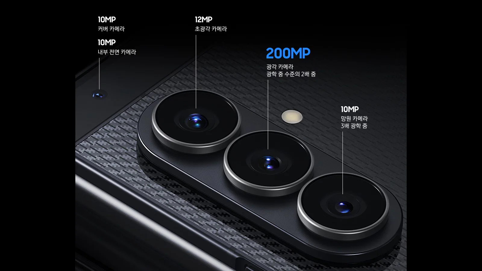 Задня панель успадковує потрійну камеру Z Fold7, що складається з основного модуля 200 МП (ISOCELL HP2), 10-мегапіксельного телефотосенсора з 3-кратним зумом та 12-мегапіксельного надширококутного об’єктива.