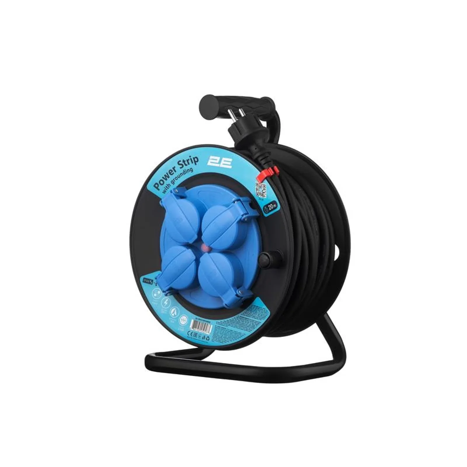 Мережевий подовжувач 2E модель CR4315IP44M20 на котушці призначений для підключення офісної та побутової техніки сумарною потужністю до 3,5 кВт. Має чотири євророзетки типу Schuko (F) із заземленням і захисними шторками. Наявна ергономічна ручка для перенесення, корпус виготовлено із вогнестійкого пластику. Трижильний кабель із перерізом жили 1,5 мм2, матеріал провідника – мідь. Клас захисту IP44 – можна використовувати у вологих приміщеннях і на вулиці.