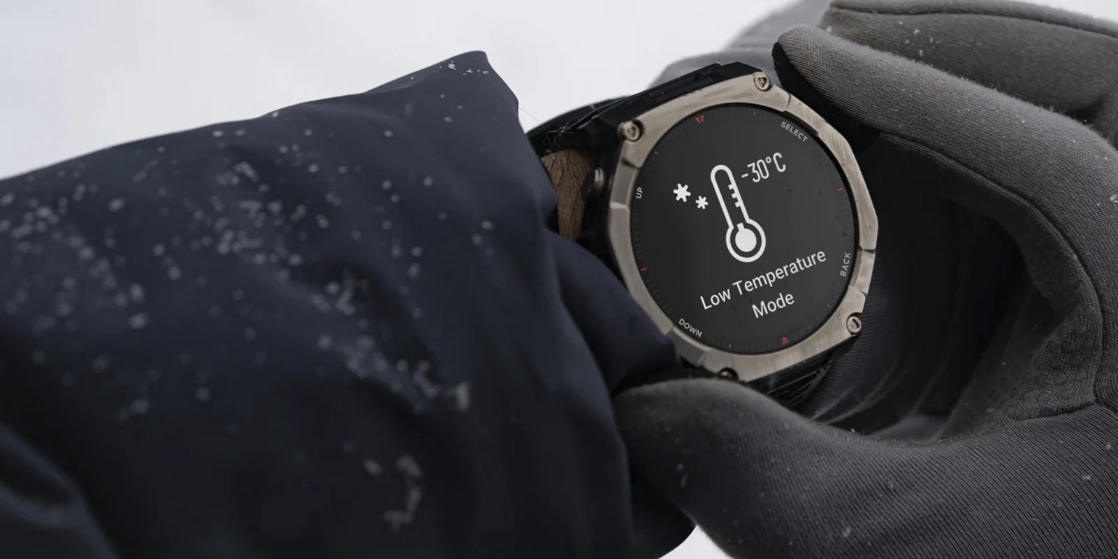 Розроблений з використанням апаратного забезпечення, що залишається працездатним у сильний мороз, годинник використовує низькотемпературний режим, щоб основні функції залишалися активними навіть при падінні температури до –30°C. Навіть у суворих умовах ключові можливості продовжують працювати, тож ви можете зосередитися на своєму маршруті.