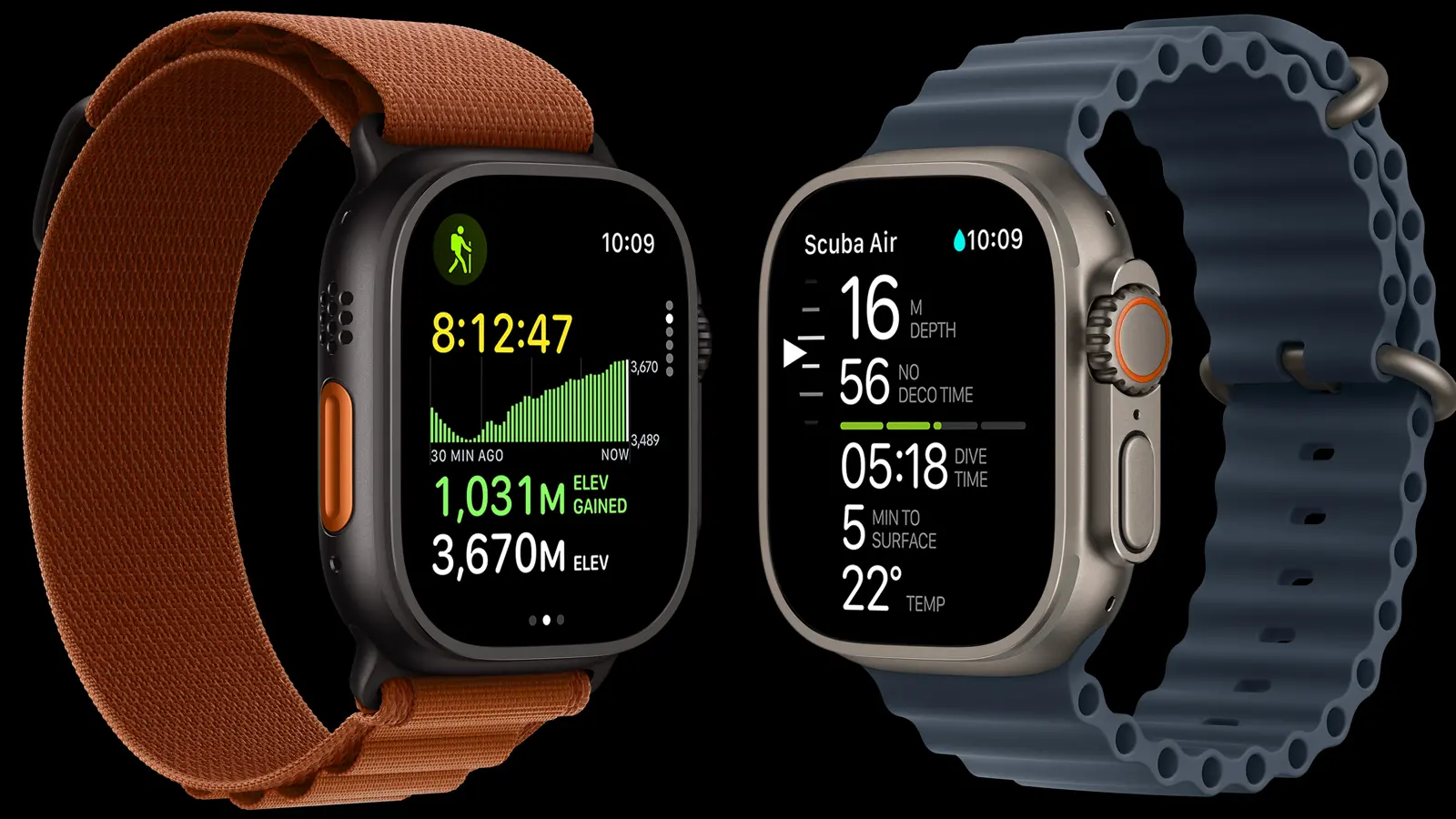 Занурюйтеся в нові можливості. Розроблений спільно з Huish Outdoors, додаток Oceanic+ перетворює Ultra 3 на повноцінний підводний комп’ютер, що працює за алгоритмом декомпресії Бюльмана.12 Просто прокрутіть коронку Digital Crown, щоб миттєво отримати корисну інформацію. Оснащений усіма важливими попередженнями про безпеку, додаток постійно обчислює та відстежує параметри вашого занурення.