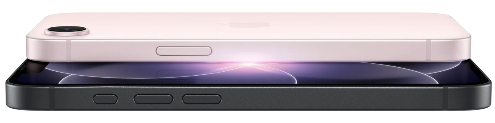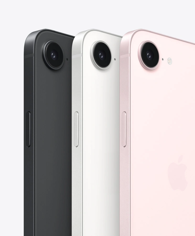 iPhone 17e доступний у трьох вишуканих кольорах. Обирайте класичний чорний чи білий або новий ніжний світло-рожевий, що привертає погляди.