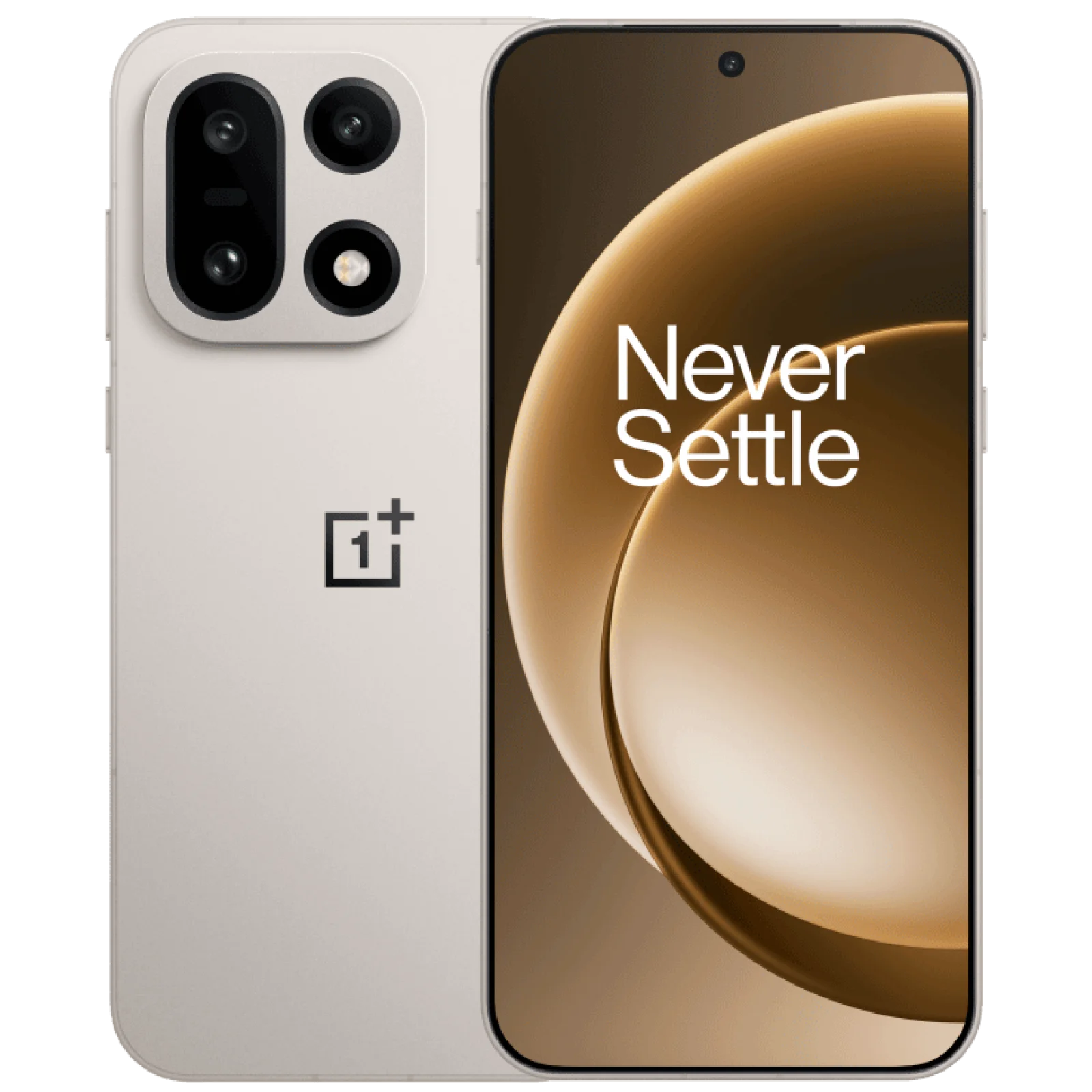OnePlus 15 представлений у трьох елегантних кольорах: Infinite Black (абсолютний чорний), Sand Storm (піщана буря) та Ultra Violet (ультрафіолет). Версія Sand Storm отримала унікальне покриття на основі аерокосмічної технології Micro-Arc Oxidation (MAO), яке робить середню раму та декор камери у 3,4 рази міцнішими за алюміній та у 1,3 рази міцнішими за титан.