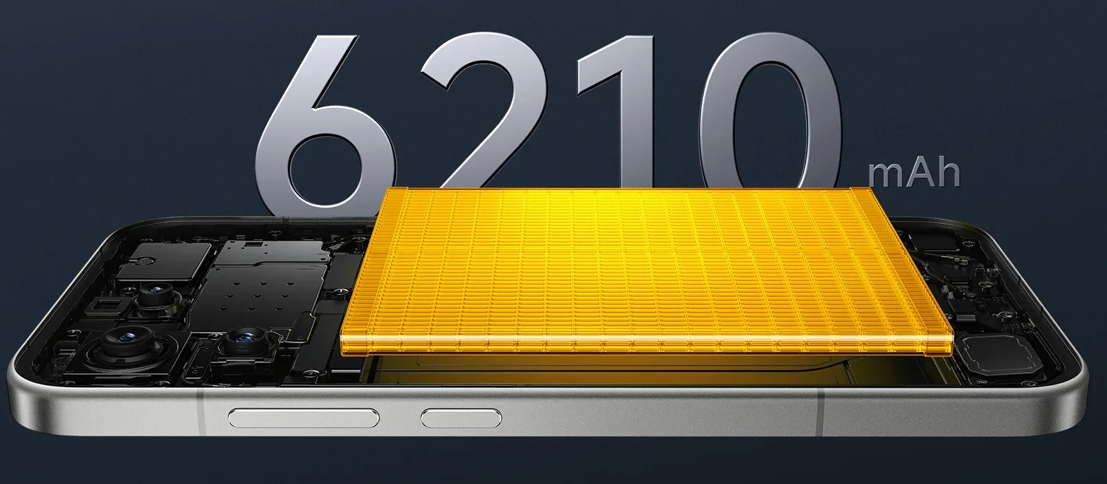 Масивна батарея 6210 мАг витримує 16+ годин безперервного використання, 56+ годин дзвінків чи 10+ годин ігор.