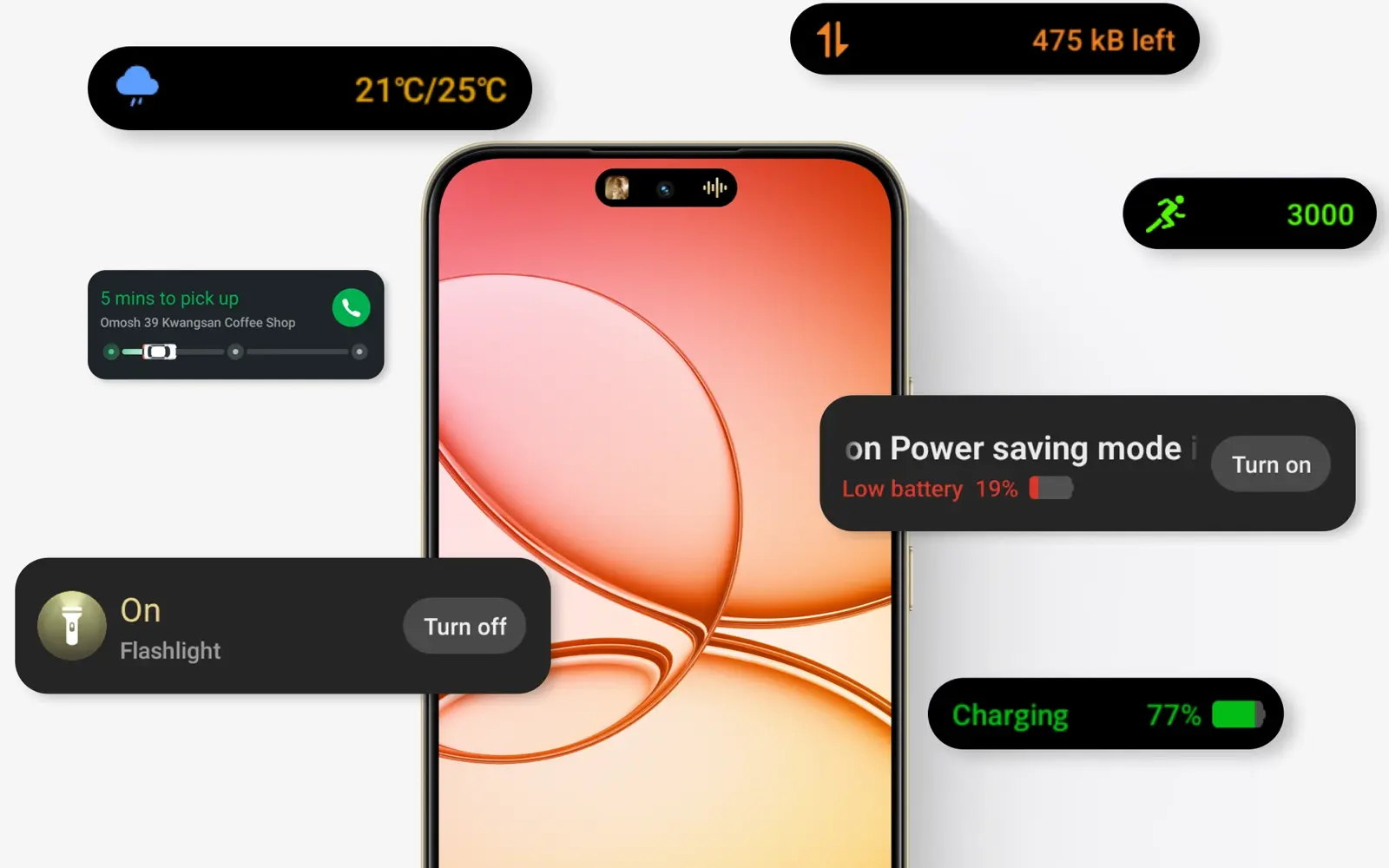 Ємна батарея на 7000 мА·год витримує навігацію, стрімінг, месенджери та зйомку протягом усього дня. Коли потрібно швидко підзарядитися, у пригоді стає швидка зарядка 60 Вт: за коротку перерву ви повертаєте години реального користування. Розумні режими енергозбереження адаптують роботу системи під ваші звички.