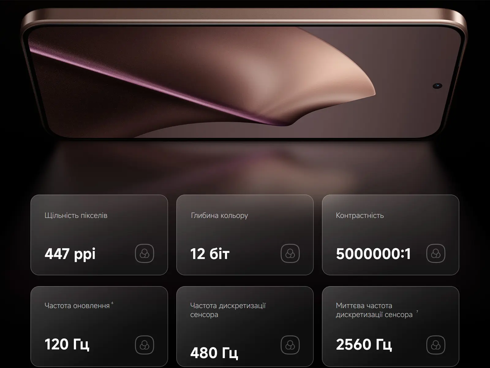 Імерсивна панель з ультратонкими рамками пропонує роздільну здатність 1,5K, щільність 447 ppi, 12-бітну глибину кольору та частоту оновлення 120 Гц. Частота опитування сенсора сягає 480 Гц у повсякденних сценаріях і миттєвих 2560 Гц у Game Turbo, що відчутно покращує контроль у динамічних іграх.