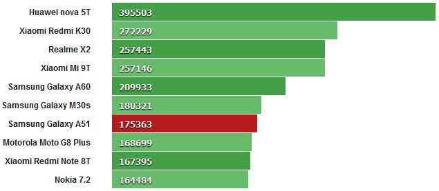 Продуктивність Samsung Galaxy A51 SM-A515 в тестах AnTuTu 8