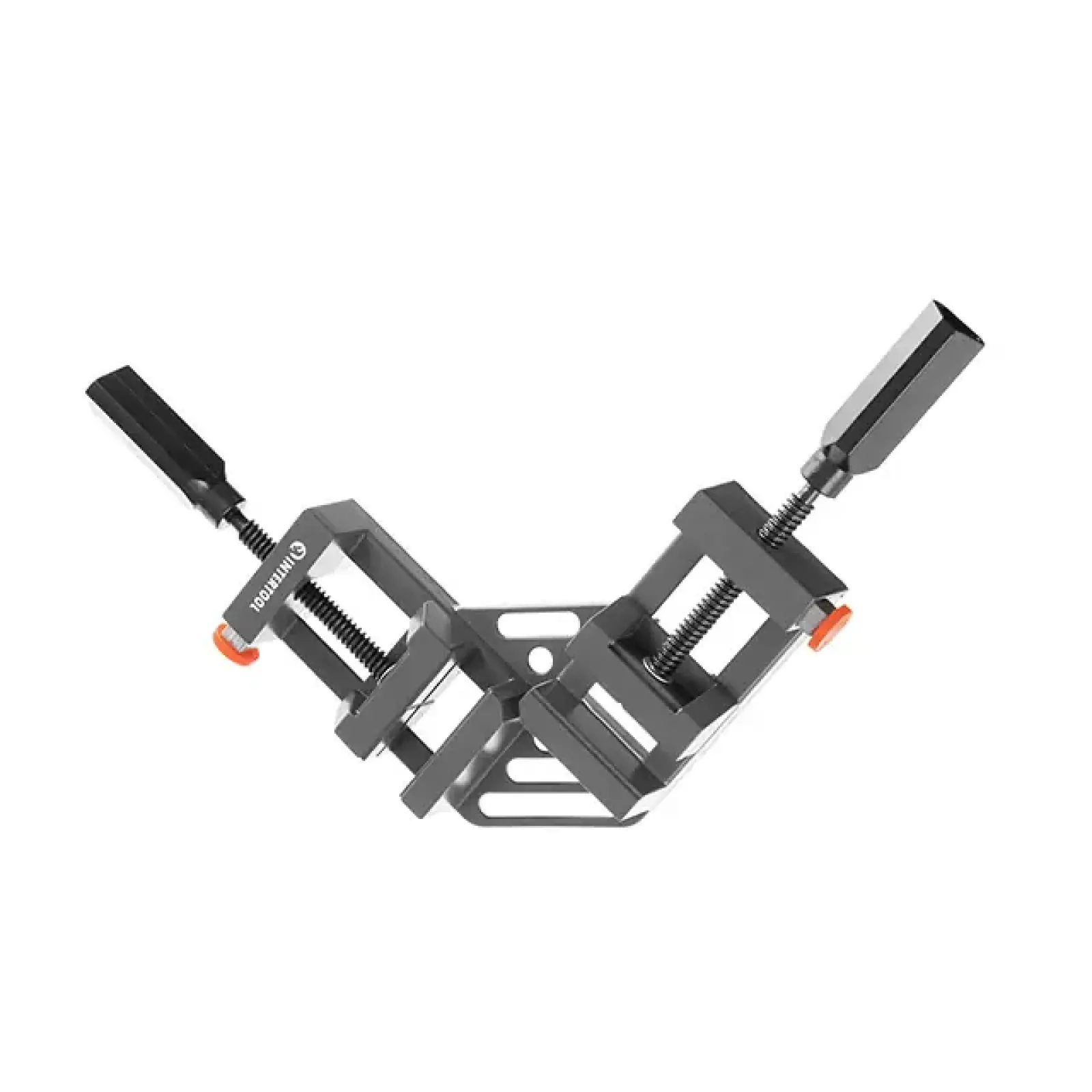 Струбцина виготовлена з міцного алюмінієвого сплаву з губками, розташованими під прямим кутом.