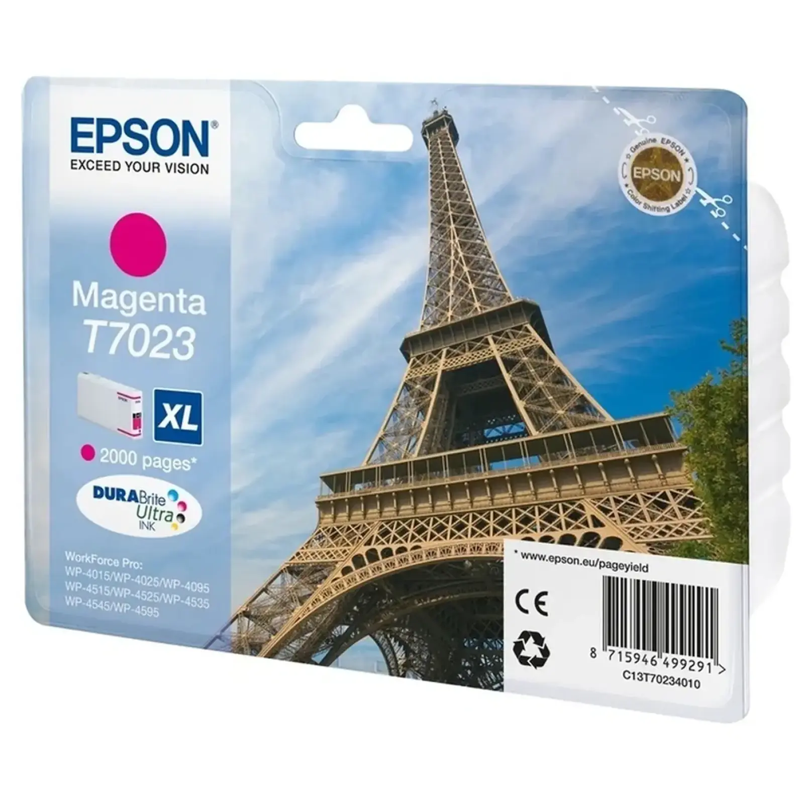 Оригінальний Epson T7023 - це гарантія стабільної роботи принтера, відсутності засмічень друкуючої головки та збереження якості друку на високому рівні. Чорнила швидко висихають, не розмазуються та стійкі до вицвітання - документи виглядають професійно навіть після тривалого зберігання.