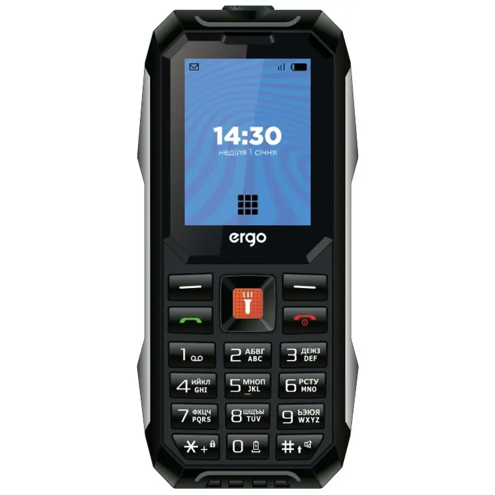 Ergo E182 виконаний у класичному форм-факторі моноблока. Невеликі розміри та легка вага дозволяють легко носити телефон у кишені або сумці.