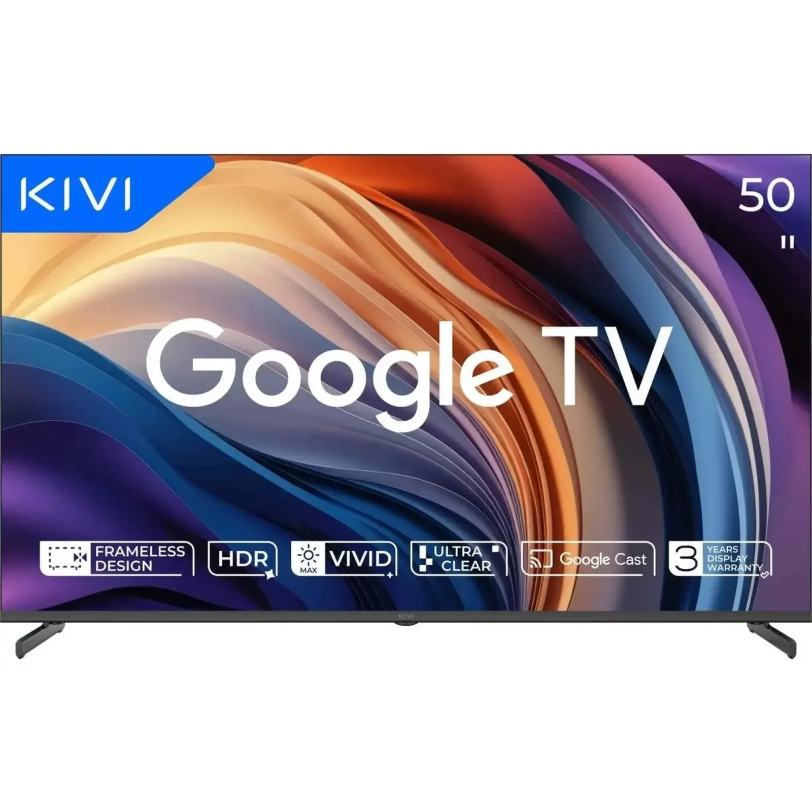KIVI 50U710QB має сучасний безрамковий дизайн з тонкими боковими рамками і чорним корпусом, що гармонійно впишеться в будь‑який інтер’єр.
