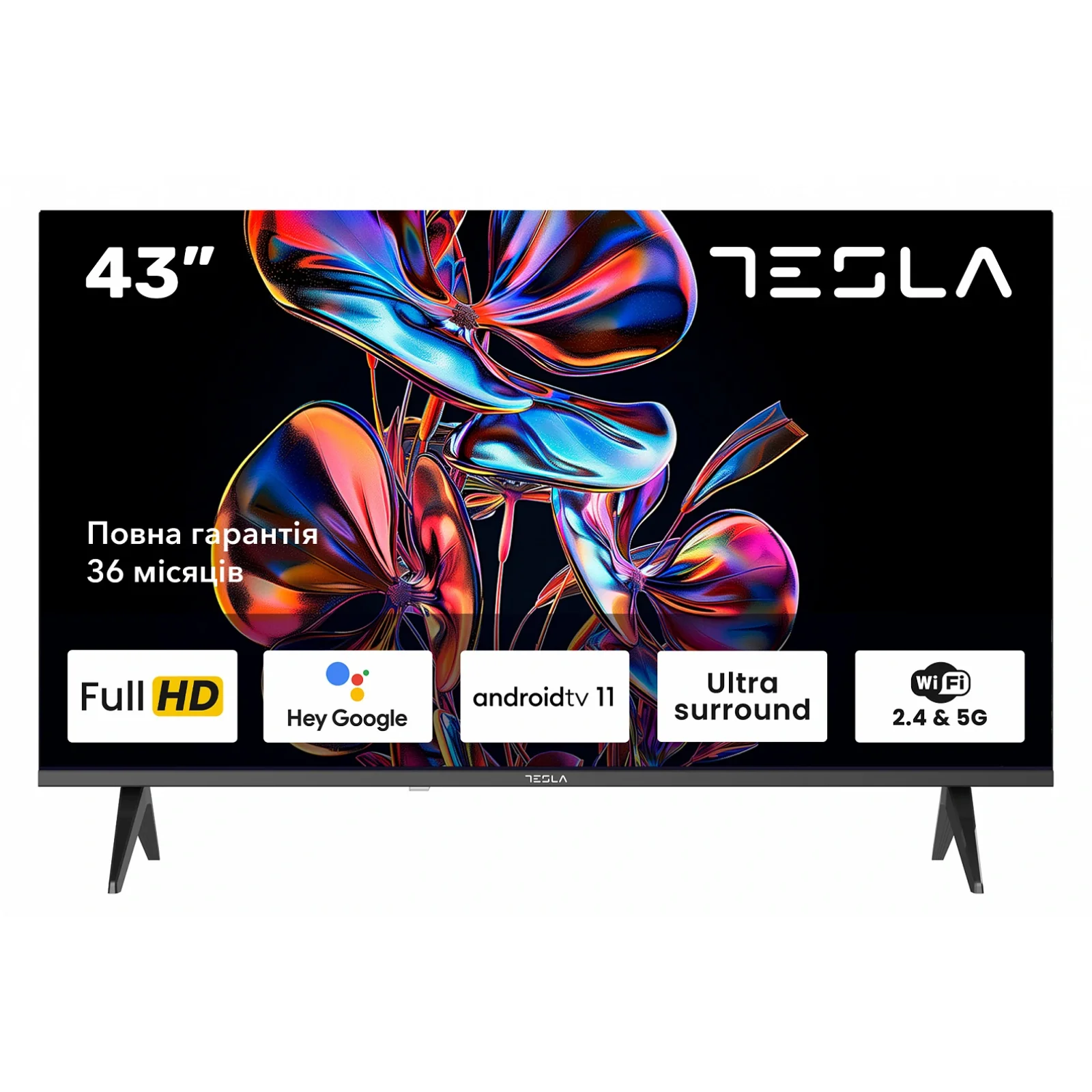Телевізор LED типу має звичайний екран з форматом Full HD, де роздільна здатність становить 1920х1080. Кадри на екрані змінюються з частотою в 60 Гц. Tesla 43E635BFS володіє 2 USB-роз'ємами та 3 HDMI, цього більш ніж достатньо для підключення потрібної додаткової техніки. У пристрої є 2 хороших динаміки, кожен з яких має потужність 10 Вт. Його можна використовувати як з підставкою, так і повісити на стіну за допомогою кріплення VESA. Телевізор має оперативну пам'ять на 1 гігабайт і загальну на 8 гігабайтів.