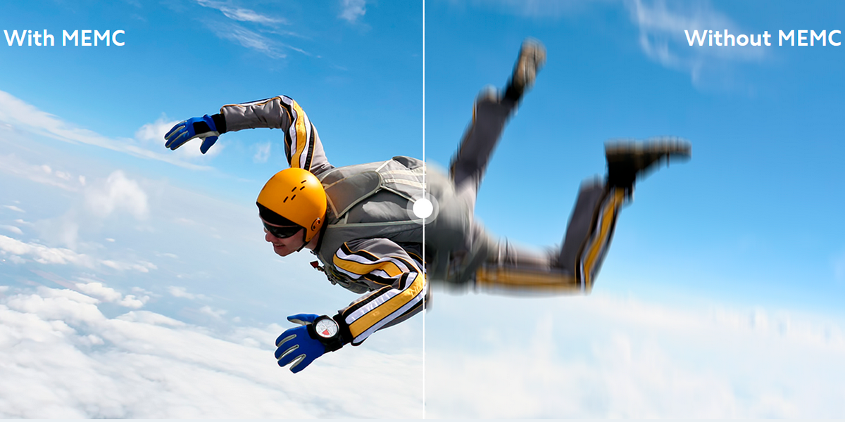 MEMC може автоматично вставляти компенсаційні, проміжні кадри в контент з низькою частотою кадрів, щоб унеможливити розриви та тремтіння, забезпечуючи велику плавність швидких рухів, наприклад, під час спортивних заходів, автоперегонів тощо