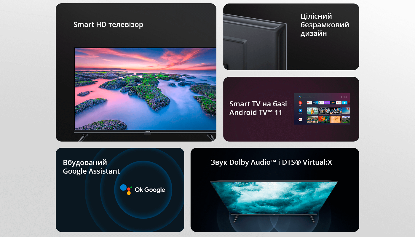 Завдяки вишуканим металевим рамкам і цілісному дизайну телевізори серії Xiaomi A2 стануть справжньою прикрасою в будь-якому домі і чудовим придбанням.