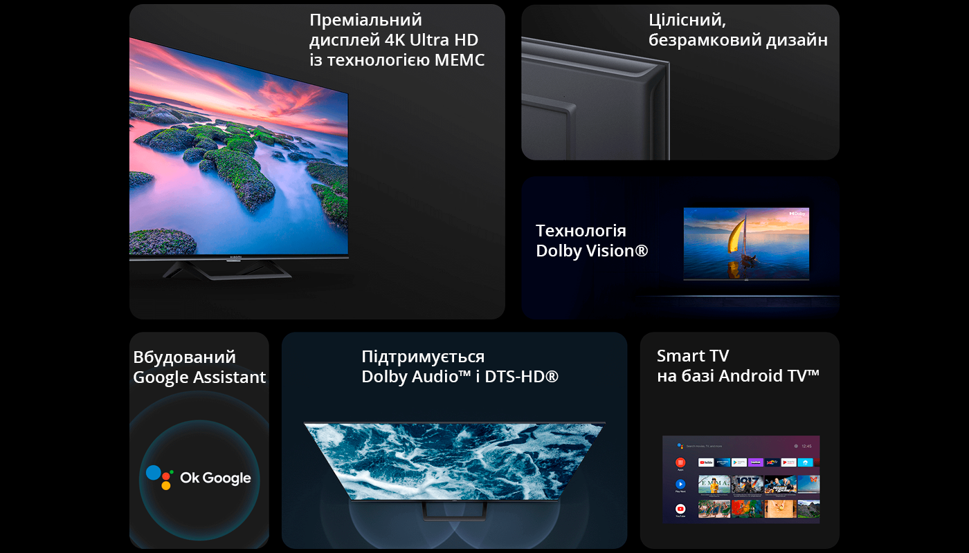 Завдяки вишуканим металевим рамкам і цілісному дизайну телевізори серії Xiaomi A2 стануть справжньою прикрасою в будь-якому домі і чудовим придбанням.