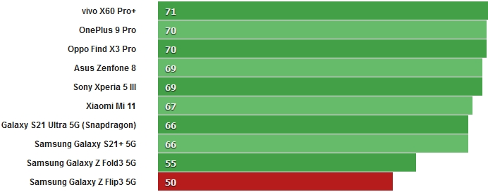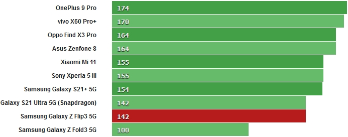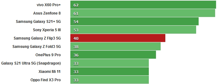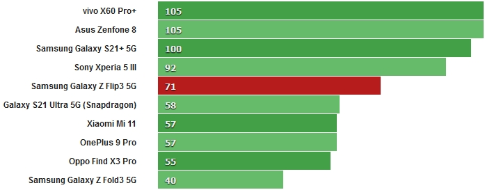 За великим рахунком, Flip3 показує досить хороші результати, хоча і поступається іншим смартфонам з аналогічним процесором. Звичайно, всі інші конкуренти не є розкладними смартфонами, і цей параметр теж слід враховувати.
