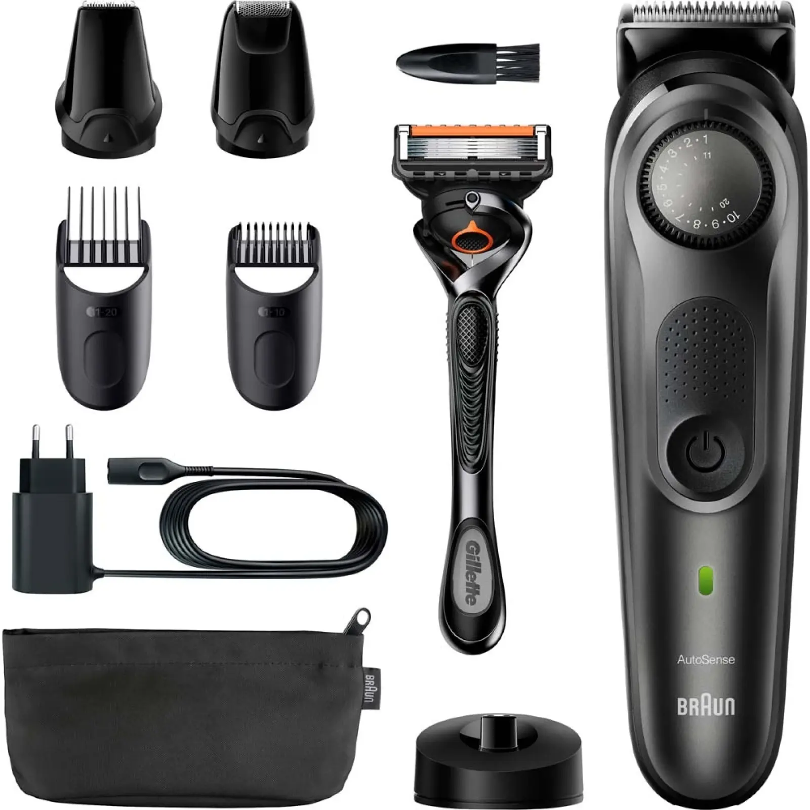 Тример Braun BeardTrimmer BT7340 — це інструмент преміум‑класу для чоловіків, які хочуть отримувати салонний результат у домашніх умовах. Модель поєднує самозаточувальні металеві леза, технологію AutoSense, 39 точних налаштувань довжини та автономну роботу до 100 хвилин. Завдяки широкому набору насадок BT7340 підходить для короткої щетини, середньої бороди, довгих стилів і точного контурингу, забезпечуючи стабільну продуктивність навіть на густому волоссі.
