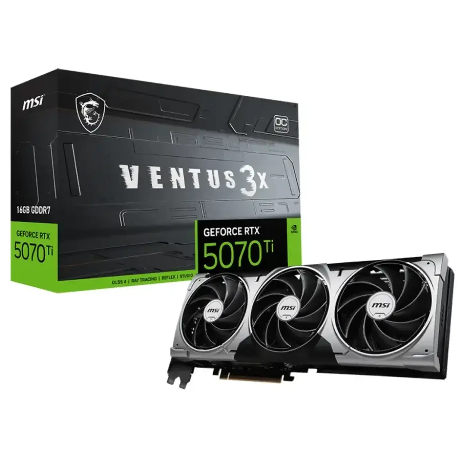 MSI GeForce RTX 5070 Ti 16G VENTUS 3X OC (912-V531-083) – потужна сучасна відеокарта, створена для геймерів, стрімерів та творців контенту, які потребують високої продуктивності та реалістичної графіки у сучасних іграх та професійних застосунках. Завдяки передовій архітектурі GeForce RTX 5070 Ti та ефективній системі охолодження, ця карта забезпечує плавний FPS і стабільну роботу навіть у найвимогливіших проектах.